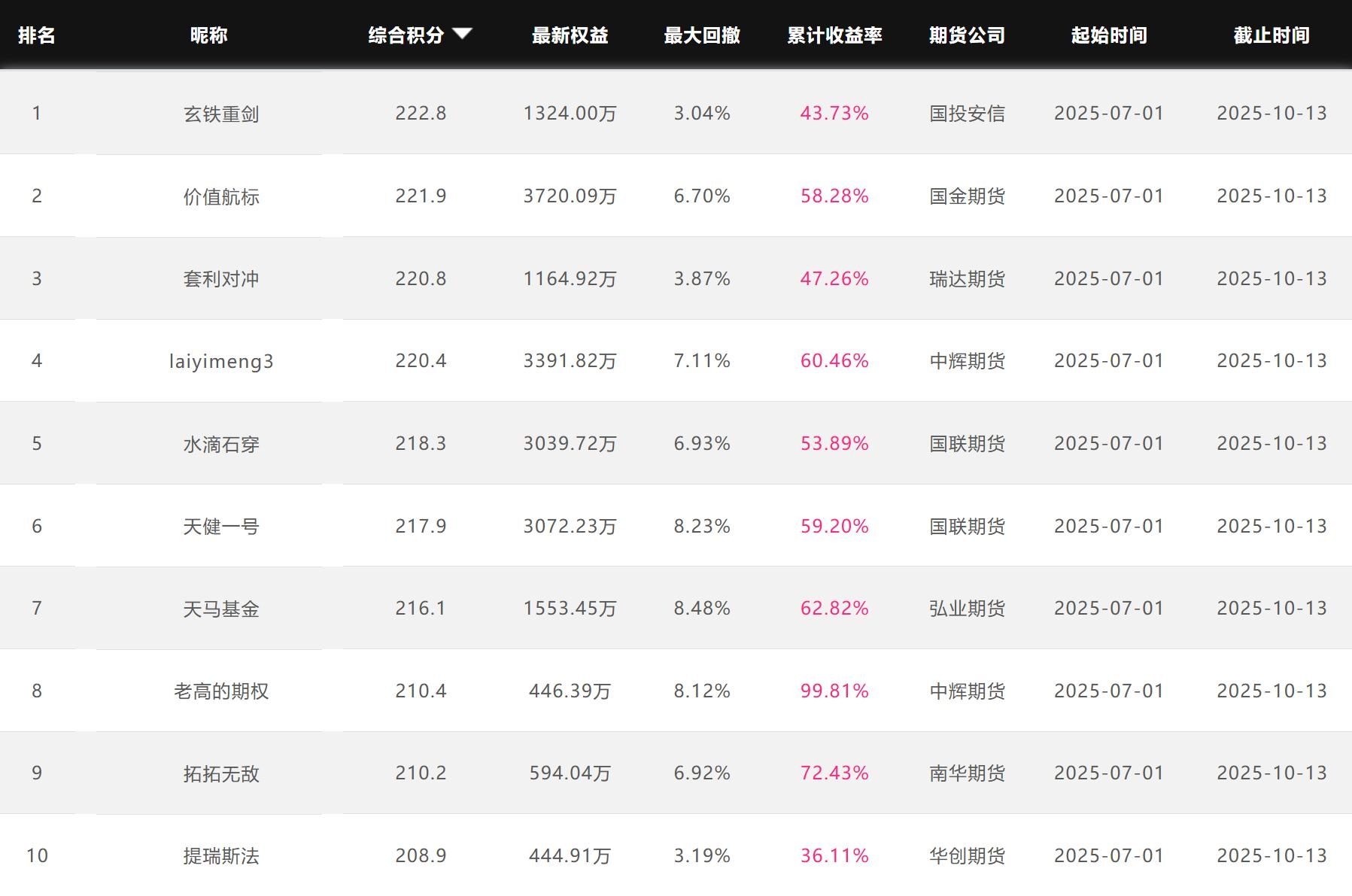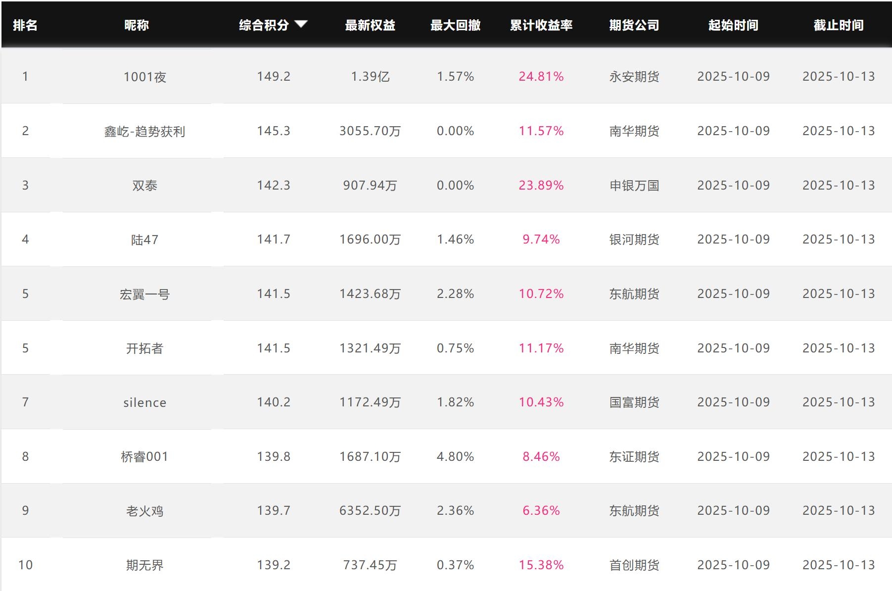 2025年10月【月度排名】(2025年10月1日-10月31日)