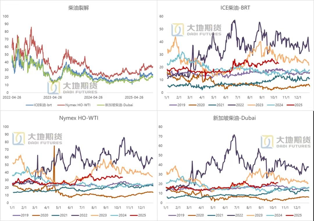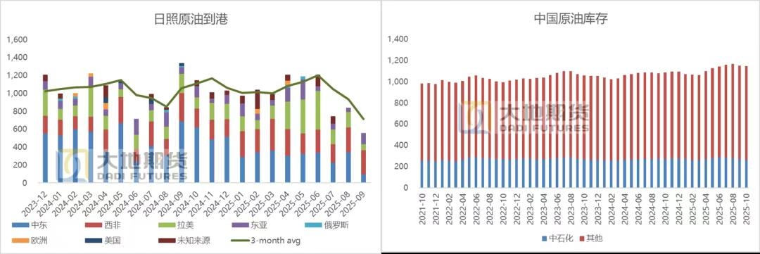 01、Taco&制裁 Taco again 周五晚特朗普在社媒威胁或对中国关税提高到100%,以此来应对中国对其征收船舶费、稀土出口管制等反制措施。市场担忧关税战重启,恐慌情绪下抛压加剧,周五晚大类资产同步下跌。 两天后特朗普缓和态度,称仍考虑APEC与中方领导人会面等,taco行情重现,资产低位反弹。 数据来源:大地期货研究院 加沙停火 加沙地区于10月10日达成第一阶段停火协议,以军和哈马斯将交换人质。后续待解决的矛盾在于哈马斯是否接触武装以及加沙战后管理权归属等问题。 中东地缘焦点问题暂时有所缓和,但仍有反复概率。 地缘问题可能再次转向俄乌、伊朗、委内等地区。 数据来源:大地期货研究院 美国对国内码头制裁 10月9日,美国公布了对涉伊/涉俄个人及实体的新一轮制裁,其中包括日照实华原油码头,该码头涉及较大量的主营业务,市场关注度较高。 日照港共有4个30万吨级的vlcc接卸码头,5条原油长输管线和1700余万立方米的仓储能力;从股权归属来看,这4个码头分别归属于山东港口日照港集团和日照实华原油码头有限公司,其中实华的股权结构中中石化占比超过50%。 从数据来看,该码头日均原油到港约100万桶日,近三月有明显下滑,至60-80万桶日区间;其中,中石化的货量基本稳定占到贸易量的一半以上。 数据来源:大地期货研究院 美国对国内码头制裁 市场担忧制裁会影响到该码头的接货情况,以及对主营开工造成影响。 从进口来源来看,日照港来源相对丰富,中东、西非、拉美共占总进口的约九成,相对来说较为均衡,不太会对某地区造成单一量级上的冲击。 库存角度,中石化整体库存水平稳定,主营的内部调动能力相对较强。 若日照港的接货出现问题,替代角度来看,青岛港可能作为最优备选来分担日照港货流,一方面青岛港具有地理优势,具有与日照相当的vlcc接货能力;同时青岛港的主要股东之一也是中石化,且在董家口有千万立方米级别的商储库区。 数据来源:大地期货研究院 从去向来看,日照港口主要服务对象包括中石化旗下炼厂(长江沿线为主)和山东区域地炼。 正值秋检季,主营和地炼的开工季节性回落,超预期降负情形可能需要制裁效应进一步放大验证,短期暂不认为有较大超预期降负压力。 数据来源:大地期货研究院 02、在途要去哪里 在途量级飙升 库存水平来看,近一个月在途量级出现显著增长,量级摆动超过1亿桶,考虑到浮仓变化不大,那么loading速度在9月中开始明显加快,日均增量在300万桶,10月初开始loading速率回落。 数据来源:大地期货研究院 这部分的发运增加更多来自中东的增量,累库预期已在月差体现,集中到港可能会在10月底-12月期间兑现。 数据来源:大地期货研究院 除中国外地区的库存仍处低位 截至10月13日,全球除中国外地区的原油岸罐库存录得23.25亿桶,仍处五年区间下沿水平,较同期最低值仅高出1800万桶。 数据来源:大地期货研究院 03、结构数据更新 月差back略有回落 截至10月10日,ti近次月价差收于0.42,近2-3收于0.21;brt近次月收于0.45,近2-3收于0.22;SC近次月收于-2.3。 数据来源:大地期货研究院 油品裂解维持高位 数据来源:大地期货研究院 数据来源:大地期货研究院 基金持仓净多仍维持低位 9月23日当周,TI基金多头减少13702手,空头减少3386手,净多减少10316手。 数据来源:大地期货研究院 10月7日当周,brt基金多头减少41262手,空头增加19562手,净多减少60824手。 数据来源:大地期货研究院 责任编辑:七禾编辑 |