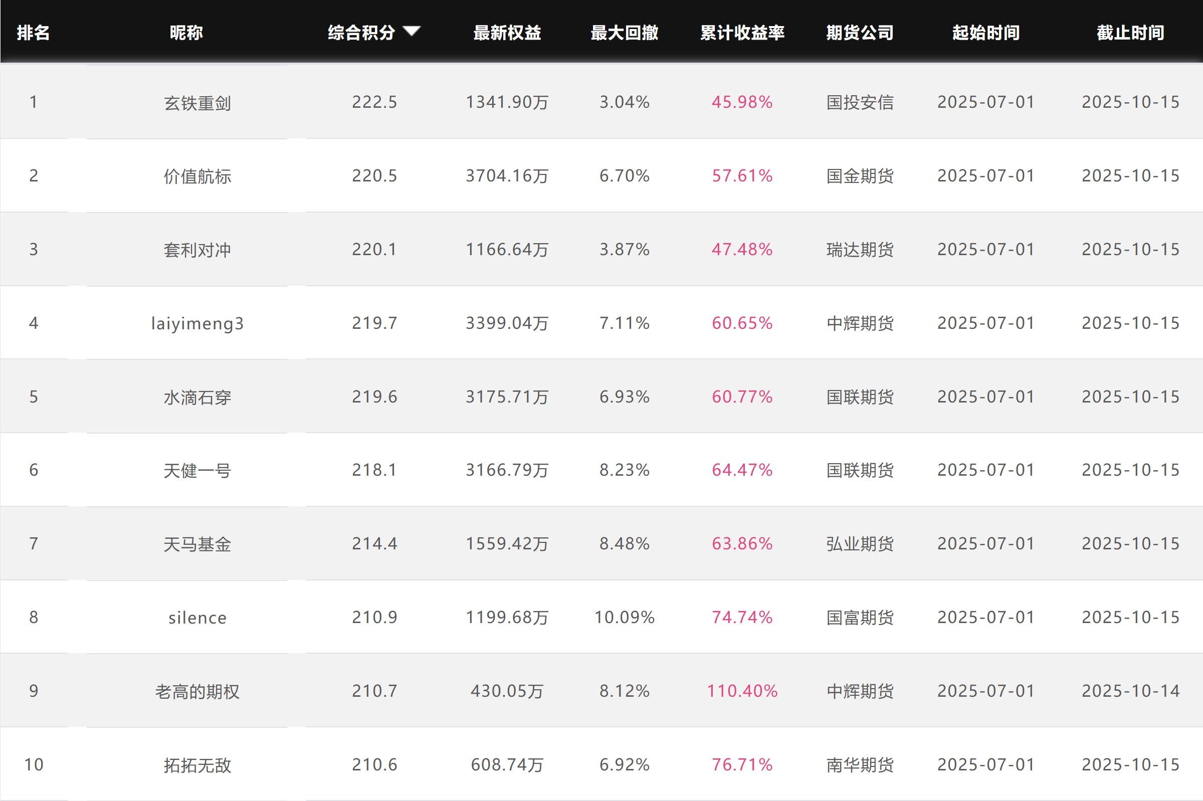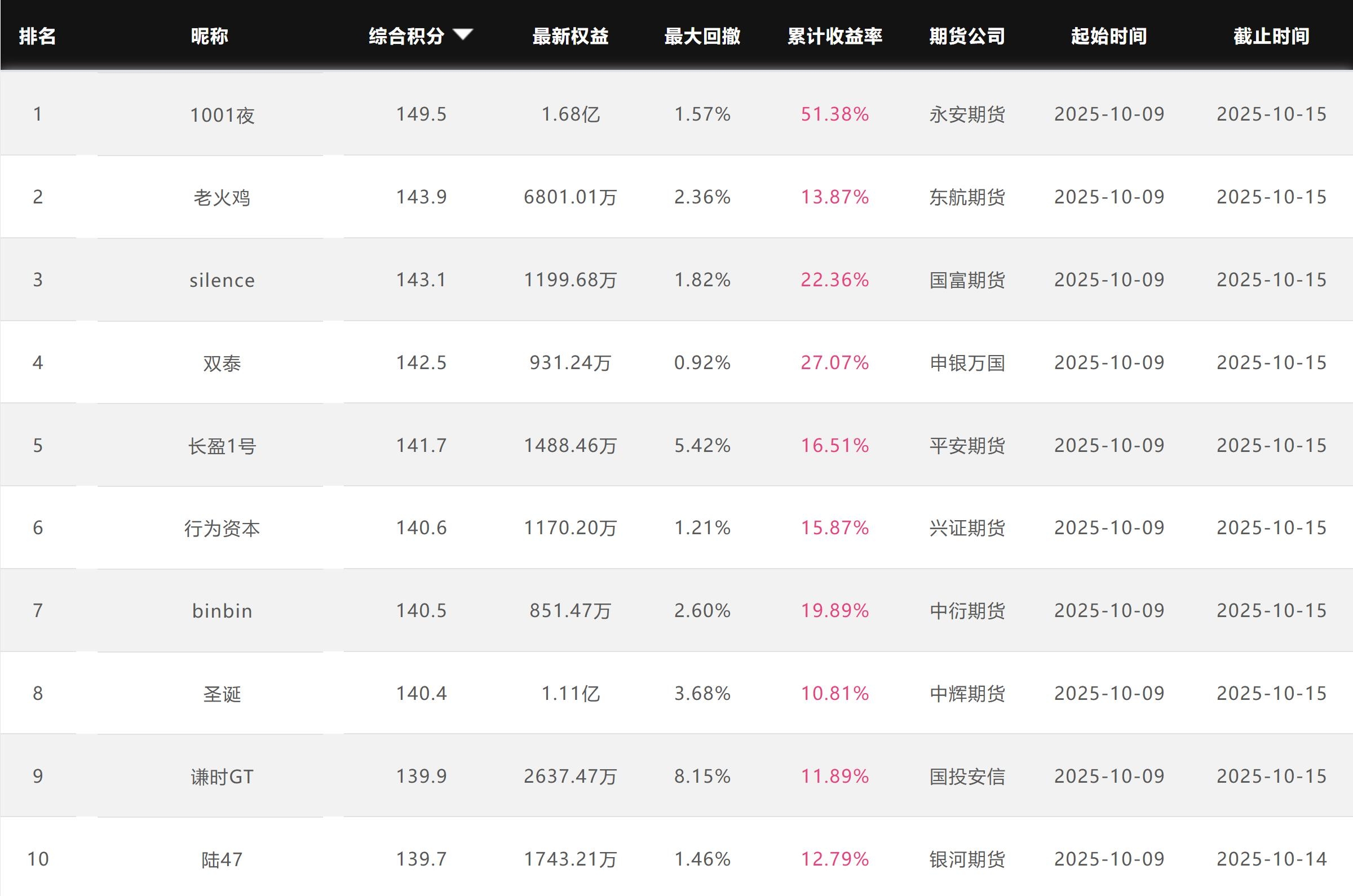 2025年10月【月度排名】(2025年10月1日-10月31日)