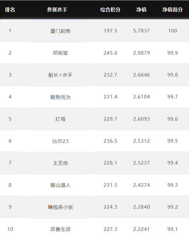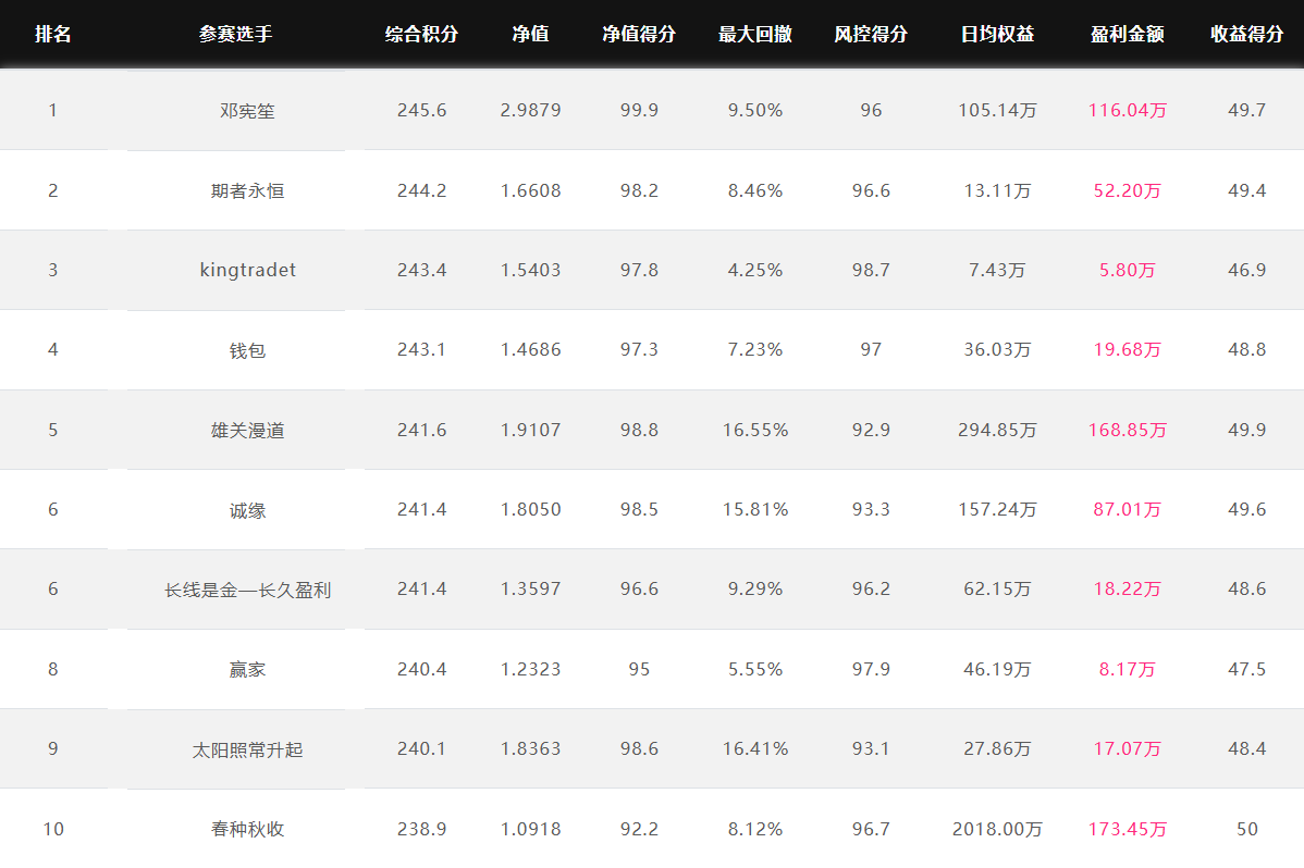 参赛账户“邓宪笙”,第五届大赛参赛后,交易胜率100%,净值呈平稳上升态势。交易的品种有IF、IM、黄金和白银,其中中证1000的盈利贡献最大,沪深300盈利次之! 多品种交易,三个半月账户净值2.98! 该账户交易比较激进,日均风险度在113.44%。 奖金上不封顶 特定期货公司参赛奖金翻倍 优秀选投 每周选优秀选手对接资金 达标必投 单笔最多给1个亿管理型资金 管理型资金盈利分成20%~70% 免费培训/研报/调研/咨询 诚邀您参赛! 为了促进国内期货市场交易人才的发展和成熟,七禾网举办本次“期货CTA英雄联盟”实盘大赛&超级服务,招募优秀的操盘手,为优秀的交易人才搭建桥梁! 第四届大赛圆满结束,第五届荣耀开启,欢迎参赛!第五届大赛已于2025年7月1日开赛,火热报名中,比赛过程中持续接受报名,大赛奖金&管理型资金&超级服务,等你来领! 2023年2月16日后,在主办方指定的几家期货公司中的某一家C公司新开户参赛,享奖金翻倍! 在主办方指定的几家期货公司中的某一家B公司新开户参赛,享奖金翻倍! 大赛中的优秀选手,只要在大赛中有3个月及以上的实盘业绩,主办方将每周发送优秀参赛者的业绩、资料给合作的数十家资方,供其考察是否投管理型资金。至2022年8月12日,资方已选出23名优秀投顾,累计投入超5.5亿元管理型资金。 优秀选投:通过主办方及资方考核后,将获得管理型资金(资金来源:七禾网自有资金(买优秀选手的基金产品)、七禾网股东、数十家合作资方) 在主办方指定的几家期货公司中的某一家B公司新开户参赛,以及2023年2月16日后,在主办方指定的几家期货公司中的某一家C公司新开户参赛,可以按照:“达标必投”进行考核(将给予单笔100万元~1亿元的管理型资金,分红比例20%~70%),详细规则请联系微信:15858201632 大赛综合排名前10名 2025.10.14 大赛净值排名前10名 2025.10.14 热烈祝贺以下获得管理型资金的交易员 请添加微信:15858201632,或扫描下方二维码,联系客服报名参赛。 相关链接:7月1日正式开赛!奖金不封顶、分成20%~70%、资方已投5亿!【英雄联盟】期货实盘大赛邀您参赛! 恭贺YXR获得100万管理型资金!每周对接资金,分成20%~50%! 恭贺HAYX获得200万管理型资金!每周对接资金,分成20%~50%! 恭贺LHYX获得300万管理型资金!每周对接资金,分成20%~50%! 恭贺北京Y总获得400万管理型资金!每周对接资金,分成20%~50%! 恭贺杭州C总获得1000万管理型资金!每周对接资金,分成20%~50%! 恭贺杭州FY资产获得1000万管理型资金!每周对接资金,分成20%~50%! 恭贺杭州F总获得1000万管理型资金!每周对接资金,分成20%~50%! 恭贺杭州L总获得1000万管理型资金!每周对接资金,分成20%~50%! 恭贺杭州ZM资产获得1000万管理型资金!每周对接资金,分成20%~50%! 恭贺上海YS资产获得1000万管理型资金!每周对接资金,分成20%~50%! 恭贺深圳AMH资产获得1000万管理型资金!每周对接资金,分成20%~50%! 恭贺上海RG资产获得2000万管理型资金!每周对接资金,分成20%~50%! 恭贺杭州G总获得3000万管理型资金!每周对接资金,分成20%~50%! 恭贺杭州H总获得3000万管理型资金!每周对接资金,分成20%~50%! 恭贺上海JQ资产获得4000万管理型资金!每周对接资金,分成20%~50%! 恭贺杭州L总获得4000万管理型资金!每周对接资金,分成20%~50%! 恭贺杭州H总获得4000万管理型资金!每周对接资金,分成20%~50%! 恭贺杭州SZ资产获得5500万管理型资金!每周对接资金,分成20%~50%! 恭贺杭州N总获得6000万管理型资金!每周对接资金,分成20%~50%! 恭贺杭州X总获得8000万管理型资金!每周对接资金,分成20%~50%! |