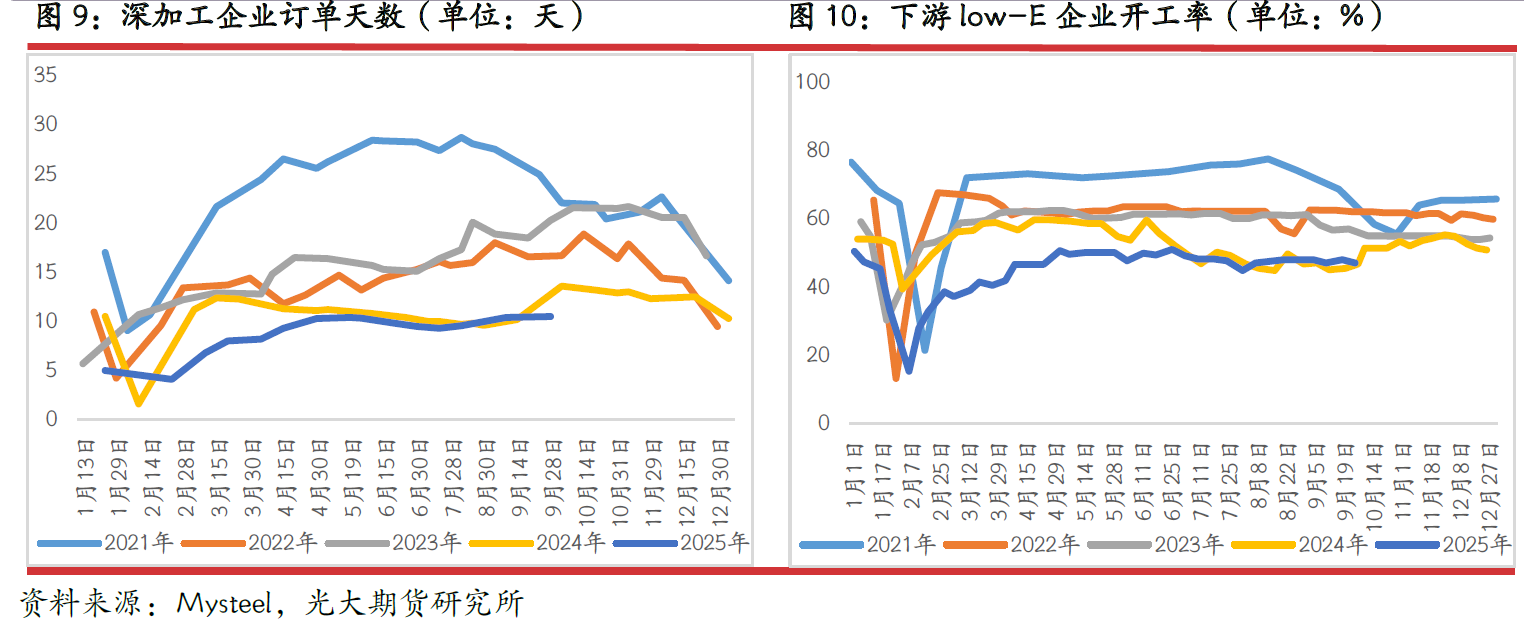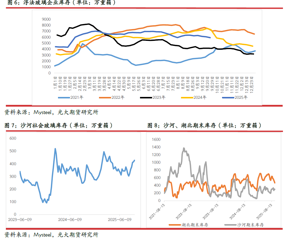 报告品种:玻璃、纯碱 原文链接:https://mp.weixin.qq.com/s/wAt6obJRXhvvUNDJdWgoeQ 调研概览 调研时间:2025年9月23日—9月26日 调研对象:沙河玻璃厂、纯碱玻璃贸易商及期现贸易商、玻璃深加工企业 调研目的:了解沙河玻璃产线生产情况、旺季产业链需求表现 调研核心观点: 玻璃:在玻璃价格低位运行良久环境中玻璃厂挺价心态强烈,国庆节前及节后部分玻璃厂仍有涨价意愿。需求旺季不旺但“银十”或仍有期待,市场最坏时期已过,后续大概率有所回温,程度取决于政策力度(如煤改气、地产政策etc.)。 纯碱:供需宽松格局下市场不缺货,中下游不急于采购,玻璃厂基本随用随采。当纯碱价格跌至1200元/吨及以下(送到)时会进行补库。远兴二期投产后纯碱价格继续承压,玻璃厂对纯碱采购价格的心理预期也会适当下移。 光期研究观点: 玻璃:基本面未明显好转前提下仅靠厂家涨价或难以持续,后续沙河地区煤改气、冬季大气污染治理、反内卷等都将给玻璃供应带来扰动。需求也存在双节备货、年底赶工等支撑,四季度供需格局有回暖预期,玻璃期价底部特征明显。但受制于终端地产需求起色偏慢,玻璃供需矛盾缓解幅度仍不明显,不建议对上方高度过分乐观。 纯碱:在新投产能压力下纯碱宽松程度将进一步扩大,但当前基本面对市场影响程度较弱。后续宏观刺激政策、反内卷及环保等外部题材将和纯碱羸弱的基本面持续博弈,故纯碱期价上、下方空间都将受限,整体走势弱于玻璃。 策略推荐: 短期(国庆节前后):买入玻璃看涨期权; 中长期:多玻璃空纯碱, 一、调研观点总结 本次沙河地区纯碱玻璃产业链调研历时4天,调研对象涵盖5家玻璃厂、3家纯碱玻璃期现贸易商、2家玻璃深加工企业。上下游产业客户对后市看法存在一定差异。 玻璃看多理由: 1、沙河产线煤改气对短期供应存在扰动,冬季存在环保限产可能; 2、沙河厂家库存水平中等偏低,部分玻璃厂几乎无成品库存; 3、中秋节前后玻璃深加工企业存在回款可能,回款情况良好则仍有可能补充原片库存; 4、宏观刺激政策预期加强,玻璃行业涨价及产线改产等政策助推市场情绪回暖; 5、玻璃价格长期处于低位,厂家亏损良久,挺价意愿强烈。 玻璃看空理由: 1、产业链中游库存压力不断创新高,期现商持续在远月卖出套保并不断移仓; 2、厂家去库系库存转移至中下游,而非需求实际好转; 3、下游加工企业订单、下游开工水平依旧不高,订单欠缺和回款问题限制对原片玻璃需求; 4、终端地产新开工及竣工面积压制未来1-2年终端需求; 5、居民收入减少,压制对家电、家装等方面需求力度,进一步限制玻璃需求。 玻璃震荡理由: 1、无论煤改气还是新投产线,市场走势基本已经反应消息面影响,后续落实与否虽仍会对市场情绪带来扰动但难有超预期影响因素; 2、地产行业难以再度大幅下行,但短期也难以快速走出底部; 3、政策影响更多存在于情绪层面,落实至产业链仍需较长时间。 纯碱: 纯碱供大于求格局深化的逻辑基本成为产业共识,价格低位时下游企业采购积极性提升,外部影响因素对情绪产生扰动,基本面影响力度偏弱。 二、调研概况 1、沙河自制煤气炉改产/停产问题 该项目主要是督促当地自制煤制气炉玻璃产线改用清洁能源(etc.正康清洁煤制气或天然气)。产业反馈改产、停产时间多在9月底至10月中下旬期间,预计全部在10月底之前完成切改工作。目前来看改或停不具备强制性,也不具备一刀切情况,因此各厂家是否推进、落实时间尚有不确定性。 当前对沙河地区玻璃供应扰动最大的因素还是厂家是否选择改产/停产。部分厂家窑龄已达到冷修条件,可能借此机会进行大改、大修,另有部分自制煤制气产线还不具备冷修条件,更改与否需要考虑较多因素,首当其冲的便是成本问题。当前沙河部分自制煤制气工艺还保有微幅利润,改产后成本提升明显或导致沙河地区产线全部亏损,是否改产的经济价值需要重点评估。 沙河地区涉及自制煤气产线共8条,日熔量合计约为4800-5000吨左右。倘若此部分产线全部在10月底之前进行原燃料切换或停产,将对玻璃供应产生阶段性影响,这也是9月下旬以来玻璃强势的核心驱动因素。截至9月20日玻璃行业在产日熔量总计约16.13万吨,即便以上产线全部改产/停产,对玻璃日熔量的影响幅度也仅有3%左右。 改产进度方面,个别厂家已完成接入正康气并已运行2-3周时间,在管道、阀门或技术条件完备情况下切换原料基本不影响玻璃供应,即便有影响也仅持续1-2天,多则3-5天。事实上,对玻璃供应有影响的是不改产而直接停产所带来的供应下降。另外,除已经完成切换的,其余多数厂家管道已铺至厂外,厂区内部管道需厂家自行铺设,部分厂家反馈后续切换可能会影响2-3周玻璃产量。 2、沙河新投产线问题 沙河地区除了以上改产、停产产线之外,还有大约5000吨日熔量待投产能,产能刚好能够抵消煤改气所带来的供应缺失。由于玻璃行业不允许新增产能,只能通过置换来获得新产线投产资格,因此以上新产线若要投产则势必伴随上述自制煤制气产线退出。因此,即便玻璃日熔量整体没有明显变化,但市场将博弈老产线停产后的供应下降和新增产线出产品(通常需要半个月至一个月左右)之间的时间差。 新投产线时间上仍有不确定性,但多数待投产线已经具备投产条件,处于随时可投状态。目前情况来看,以上