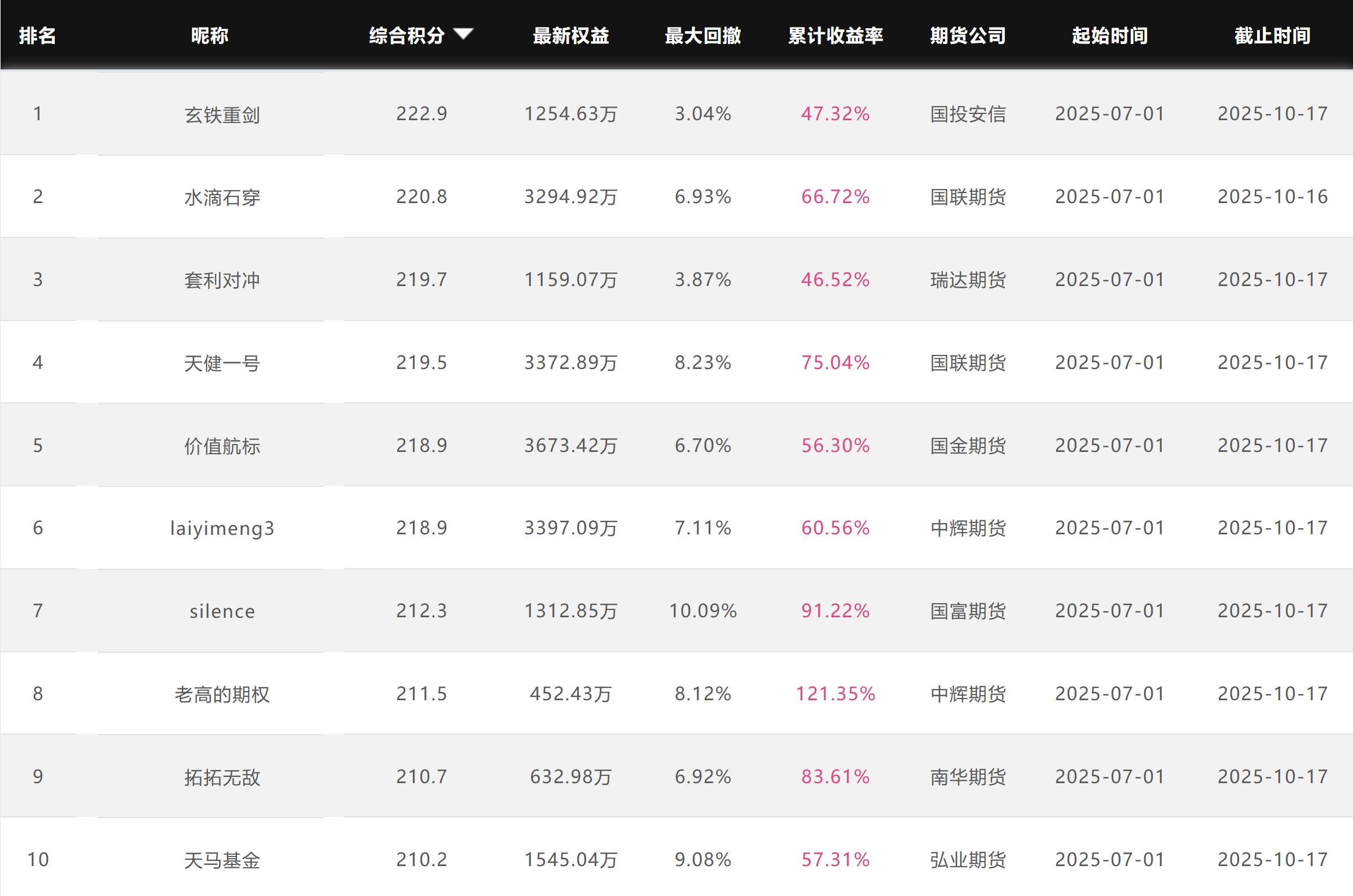 2025年10月【月度排名】(2025年10月1日-10月31日)
