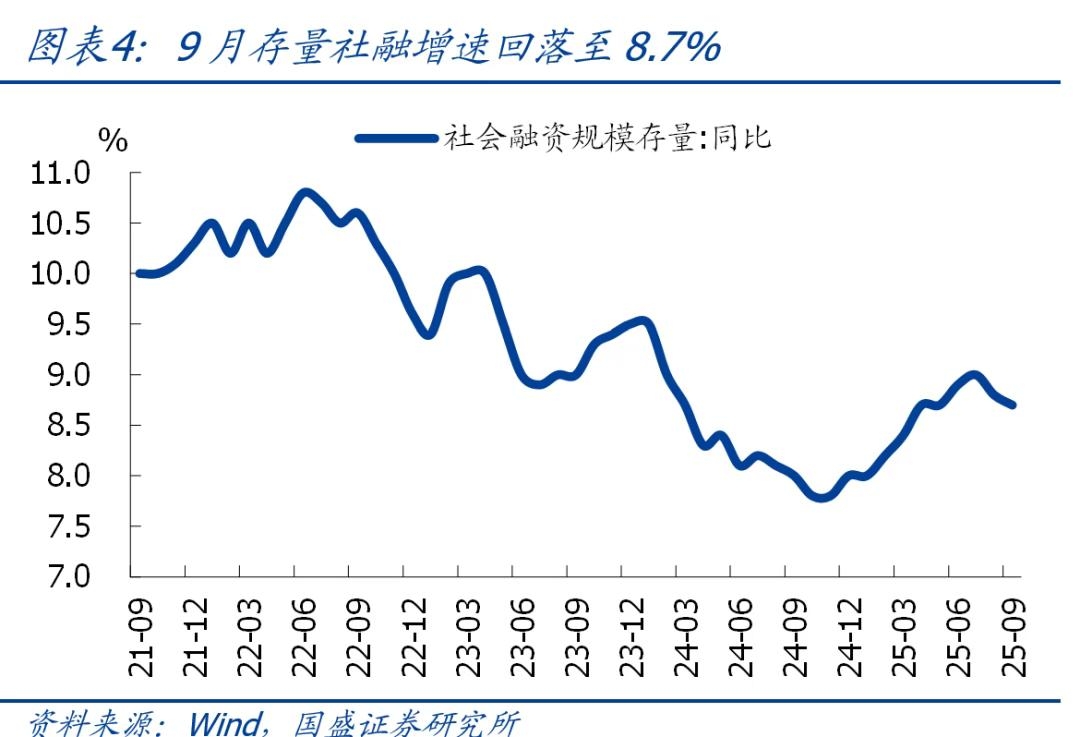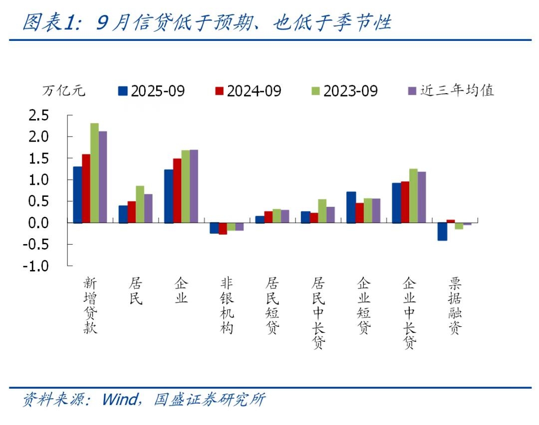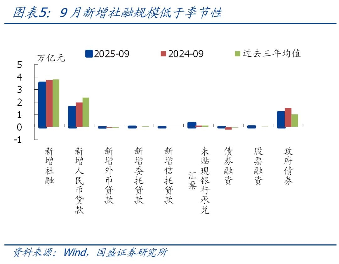 1、新增信贷连续3个月同比少增,结构也未有好转。具体来看,居民部门短期贷款同比降幅走扩,指向消费仍偏弱;中长期贷款同比多增,但主要是低基数支撑。票据冲量特征缓解,但企业短贷同比大幅多增,中长期贷款连续3个月同比少增,财政发力效果可能不及预期。 >总量看,9月新增信贷1.29万亿,同比少增3000亿,明显低于季节性(近三年同期均值为2.12万亿),也低于预期(市场预期1.39万亿)。其中,居民贷款增加3890亿,同比少增1110亿;企业贷款增加1.22万亿,同比少增2700亿;非银贷款减少2348亿,同比少减356亿。 >居民部门短期贷款同比降幅走扩,指向消费仍偏弱;中长期贷款同比多增,但主要是低基数支撑。居民短期贷款增加1421亿,同比少增1279亿、降幅走扩,指向前政策可能透支需求。居民中长期贷款增加2500亿,同比多增200亿,主要与基数偏低有关,去年同期同比大幅少增3170亿。同期房地产市场在低基数支撑下有所改善,30大中城商品房销售面积同比转正至6.7%,但二手房销售并未改善,同比降幅扩大至-79.5%。 >企业短贷同比大幅多增,但票据冲量特征缓解,中长期贷款连续3个月同比少增,财政发力效果可能不及预期。短期融资方面,企业短期贷款增加7100亿、同比多增2500亿,票据融资减少4026亿、同比少增4712亿。中长期贷款新增9100亿,同比少增500亿,指向企业投资意愿仍然偏弱,同期BCI企业投资前瞻指数有所抬升、后续能否拉动中长贷有待观察。此外,除实体企业外,财政发力带动相关配套融资改善也是中长期贷款的重要影响变量,当前企业中长期贷款连续3个月同比少增,也一定程度指向财政发力效果不及预期,实际配套融资未有改善。 2、新增社融规模好于预期、但仍弱于季节性,信贷是主要拖累、政府债券也转为拖累项,存量社融增速较上月回落0.1个百分点至8.7%。 >总量看,9月新增社融3.53万亿,同比少增2297亿,好于预期(市场预期3.28万亿),但弱于季节性(近三年同期均值为3.81万亿),存量社融增速较上月回落0.1个百分点至8.7%。 >结构看,9月社融口径人民币贷款新增1.61万亿,同比少增3662亿,是社融的主要拖累项。政府债券新增1.19万亿,同比少增3471亿,伴随政府债券逐渐发行完毕,叠加去年基数偏高,后续政府债券对社融的拖累将逐步加大。企业债券融资新增105亿,同比多增2031亿,主要也是与基数偏低有关。表外融资方面,表外三项增加3579亿,同比多增1869亿,表外票据多增是主要支撑,主要与票据冲量需求下降后、表外票据贴现至表内规模下降有关,与企业票据少增相对应。 3、M1同比进一步抬升,主要与基数走低、居民定期存款活化有关;M2同比放缓,信用扩张放缓仍是主要拖累。 >9月M1同比7.2%,较上月进一步抬升1.2个百分点,一方面基数进一步走低,另一方面股市赚钱效应带动居民存款活化可能仍是主要拉动。M2同比8.4%、较上月回落0.4个百分点,信用扩张放缓仍是主要拖累。存款方面,9月存款增加2.21万亿,同比少增1.53万亿,剔除政府债券后,财政存款减少2.03万亿,同比多减2571亿,指向财政支出加快。 风险提示:经济超预期下行,外部环境超预期,政策超预期。 责任编辑:七禾编辑 |