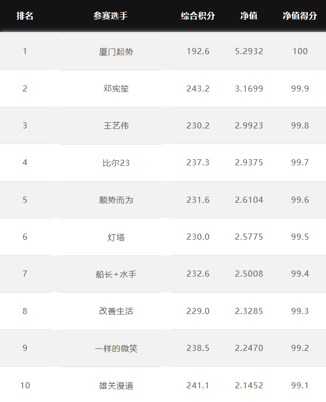 大赛净值排名前10名 2025.10.27