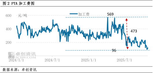 预测:PTA检修将增多 但对市场提振效果有限 预测PTA装置检修将增多,但由于PTA现货供应相对充足,检修可能只是暂缓PTA累库存,且原油供应过剩,市场缺乏持续性的上涨动力。由于此前部分主力供应商停车产能较多,制定并执行新的减产计划可能不易协调。2026年并无PTA新产能投产,预估2026年PTA利润会适度修复,2026年PTA年约谈判阶段,年底主动减产可能损失市场份额。 利好驱动:PTA低加工费背景之下的反内卷预期 截至10月27日,10月PTA月均加工费154元/吨,环比下跌15%,PTA企业生产亏损。自7月份至今,PTA日均加工费为203元/吨,连续四个月PTA理论生产亏损幅度较大,尤其是缺乏PX配套的PTA企业成本压力更大。另外市场利好驱动为贸易谈判取得进展,利好大宗商品市场心态,也利好终端纺织品服装出口,产业链需要自下而上的需求提振,而不仅仅是从供应端减产原料。
