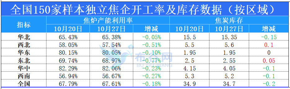 按区域划分,各产区开工率均下降。其中 华北本期65.38%,环比下降0.05%; 西北本期57.54%,环比下降0.51%; 华东本期80.05%,环比下降0.10%; 东北本期68.97%,环比下降0.77%; 华中本期82.06%,环比下降0.23%; 西南本期56.67%,环比下降0.27%。 库存方面,各区域焦炭库存涨跌互现。 华北本期15.35万吨,较上期减少0.15万吨; 西北本期5.6万吨,较上期增加0.1万吨; 华东本期1.95万吨,较上期持平; 东北本期2.55万吨,较上期增加0.05万吨; 华中本期4.05万吨,较上期减少0.1万吨; 西南本期5.2万吨,较上期减少0.1万吨。 3、总述 供应方面,近期原料煤快速上涨,焦企成本抬升,利润收窄,加之内蒙地区焦化去产能影响,焦企供应略有收紧。需求方面,钢厂多以按需采购为主,焦企库存低位运行。今日焦炭第二轮提涨全面落地,涨幅50-55元/吨。 七禾带你去调研,最新调研活动请扫码咨询