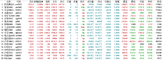 | 10月29日收盘,国内期货主力合约涨多跌少。集运欧线涨超5%,焦煤涨超3%,中证500、鸡蛋涨超2%;下跌方面,菜籽、菜油跌超2%,棕榈油、燃油跌超1%。