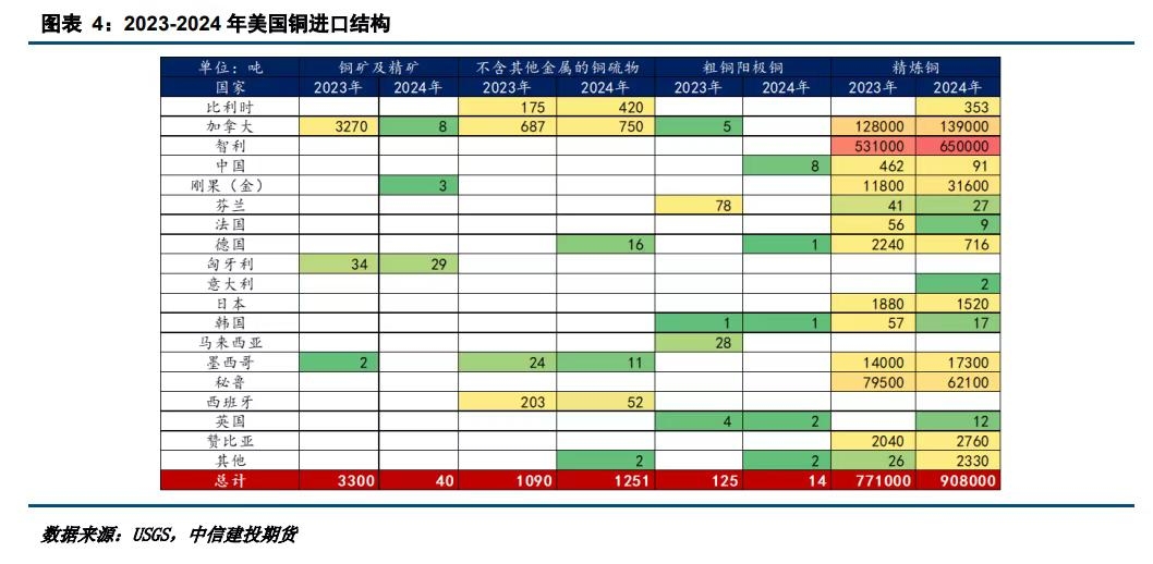 (二)需求结构性的变化 美国铜进口关税冲击,库存与需求地区性错配,加剧非美地区现货供需紧张。2025年2月26日,特朗普签署行政命令对铜启动232调查,在长达3个月的进口关税政策预期下,今年3-5月美国精炼铜进口量达54.16万吨,相当于2024年全年进口量的60%。全球现货铜向美国流转,加剧了LME现货供需紧张,刺激沪伦铜价格走强至8.2万元/1.1万美金附近。虽然特朗普宣布8月起对铜加工品加征50%关税,主要为密集、衍生铜产品,不含阴极铜、铜矿等;但未来美国铜进口关税对象与比例仍有加码风险,美国商务部长建议,2027年开始对精炼铜逐步加征关税,初始税率为15%,到2028年提升至30%。因此,目前COMEX铜库存仍在持续增长,达到31.5万吨新高,接近2002年末的历史新高。COMEX铜和LME铜交割品都是1号铜以上或A级铜,或纯度更高的电解铜,但如果COMEX铜直接参与LME的交割,其品牌必须获得LME批准注册,因此短时间内全球约48.46%的铜库存暂时被锁定在美国,目前国内铜显性库存约21万吨(不考虑社会库存),铜的库存与需求市场错在地区性错配。