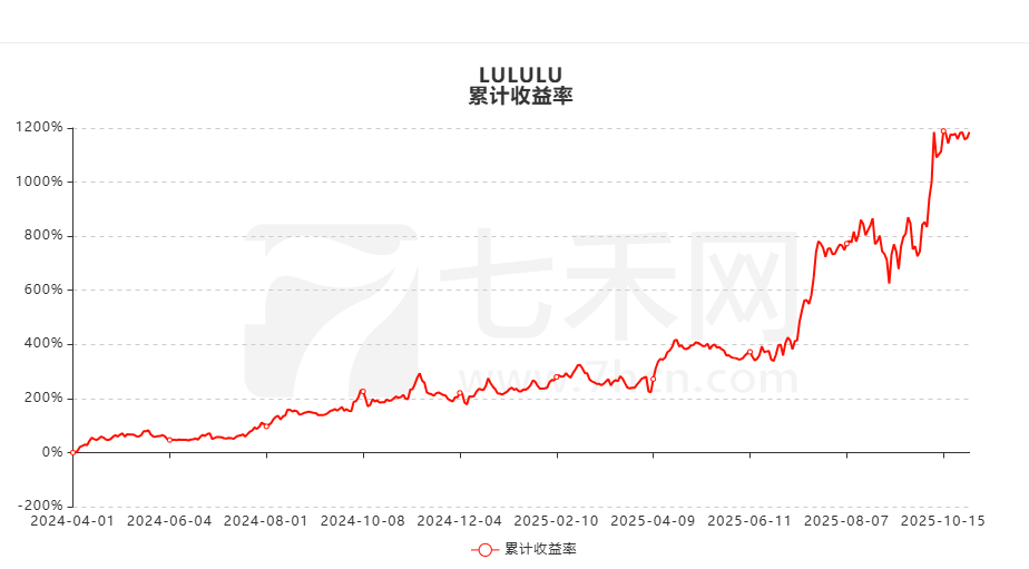 七禾网实战排行榜账户“LULULU”,展示时间从2024年4月1日至今,累计收益率1184.82%,累计净利润3586.49万元,最大回撤29.11%。