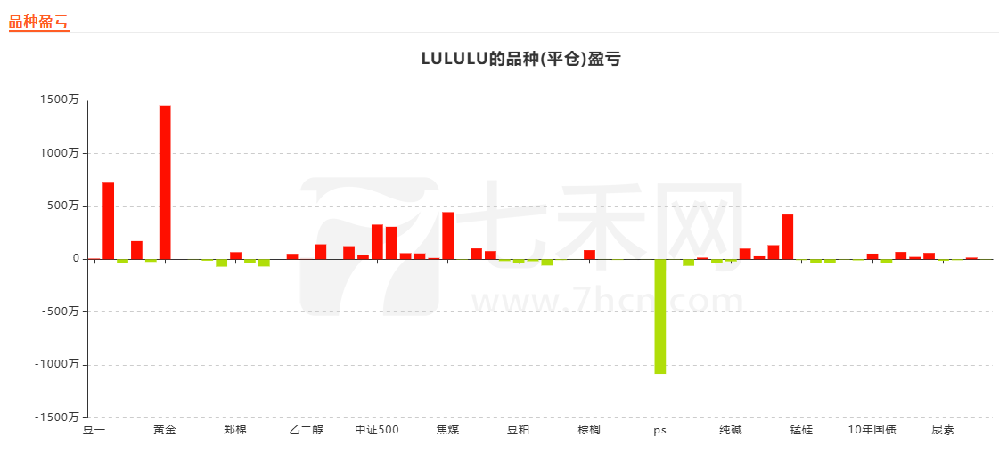 该账户为多品种交易,盈利最多的品种是黄金,盈利超过1451万元,其次是白银,盈利723万元。亏损最多的品种是ps,亏损超过1083万元。 以上交易数据来源于七禾网实战排行榜,欲了解该账户详细数据,请登录查看: