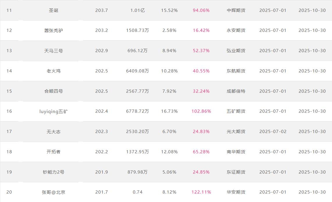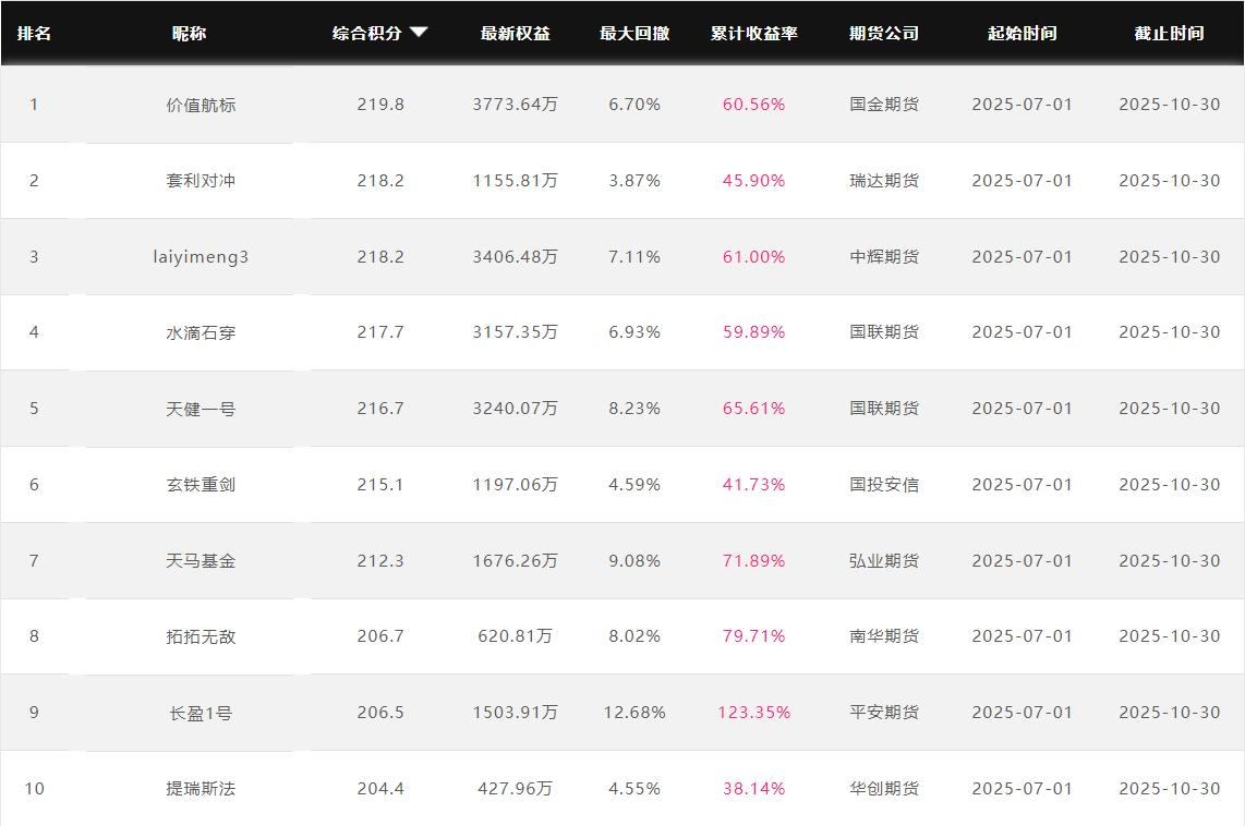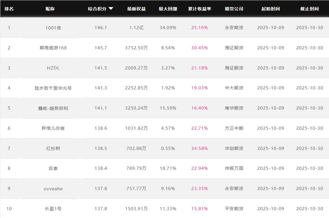 2025年10月【月度排名】(2025年10月1日-10月31日)
