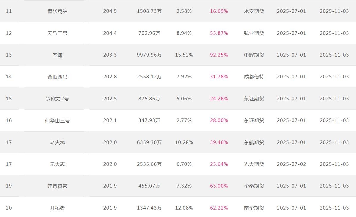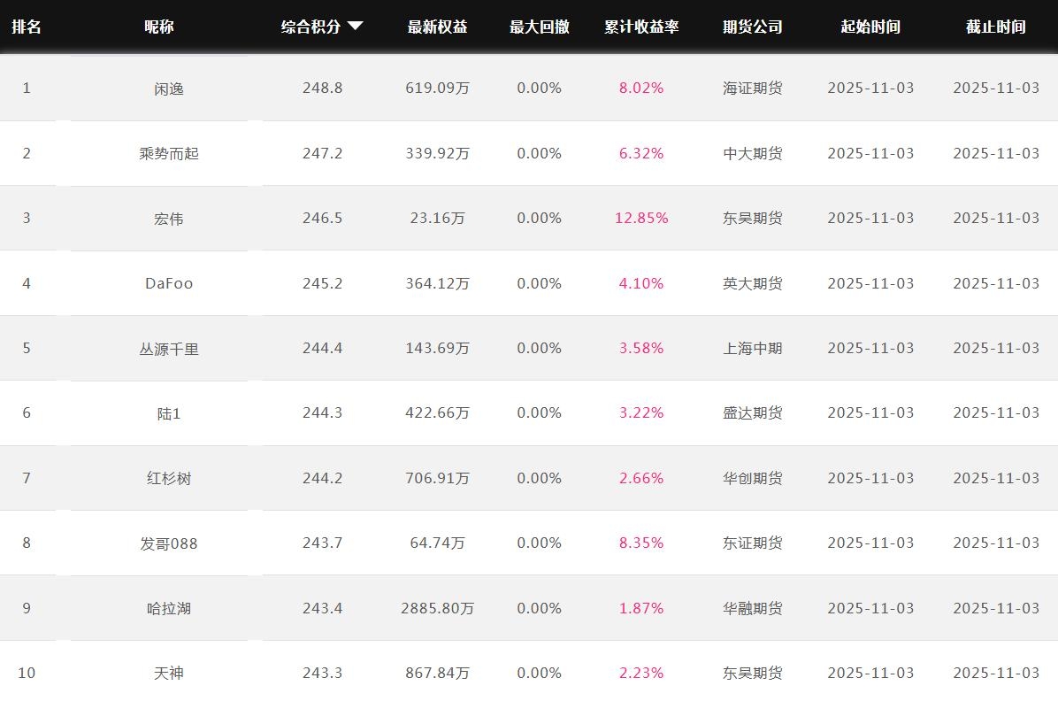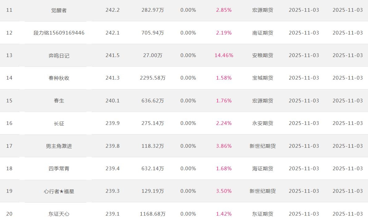 2025年11月【月度排名】(2025年11月1日-11月30日)