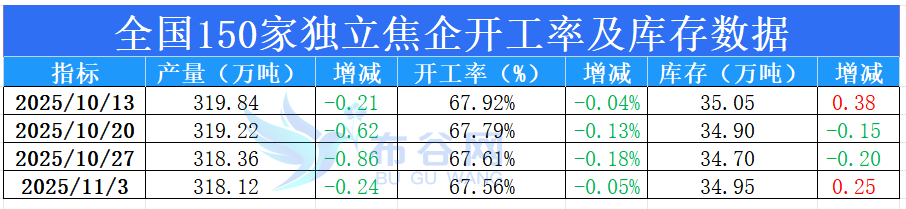 |   报告品种:焦炭 原文链接:https://mp.weixin.qq.com/s/nC_p3GjXuwNM857ifTUhkQ 焦企开工率持续下降 本期调研实际产量318.12万吨,较上期减少0.24万吨;产能利用率下降,本期开工率为67.56%,较上期下降0.05%;库存增加,本期焦炭库34.95万吨,较上期增加0.25万吨。