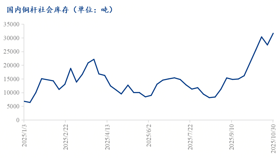 数据来源:Mysteel Mysteel调研国内5省(市)合计12个仓库铜杆库存数据显示,10月30日国内铜杆库存合计3.17万吨,较10月23日增加0.42万吨;目前铜价长期维持高位,市场在较强的畏高情绪影响下,精铜杆的流转率明显下滑,下游提货进展整体偏慢,因此现阶段多地铜杆库存整体偏高且总库存量还处于今年新高水平。 综合之前调研的结果,多数精铜杆企业近期订单情况差且环比下滑明显,使得精铜杆企业成品不断累库,在高库存压力以及没有新单支撑的情况下,精铜杆无可避免的陷入了阶段性减停产的困境。 【附图:调研结果明细】