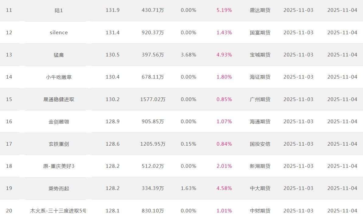 2025年11月【月度排名】(2025年11月1日-11月30日)