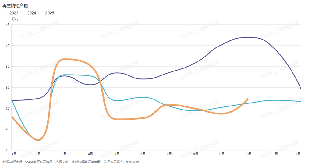 | 报告品种:铅 原文链接:https://mp.weixin.qq.com/s/_gpm4BxzF4bFrgI9oU2Nmg?scene=1&click_id=3 2025年10月再生铅产量明显上升,环比增加9.24%,同比去年增加11.86%;再生精铅产量环比上升15.25%,同比去年增加4.27%。