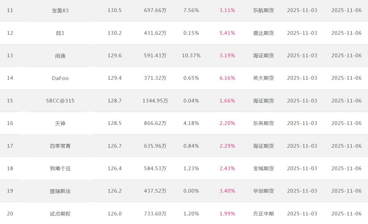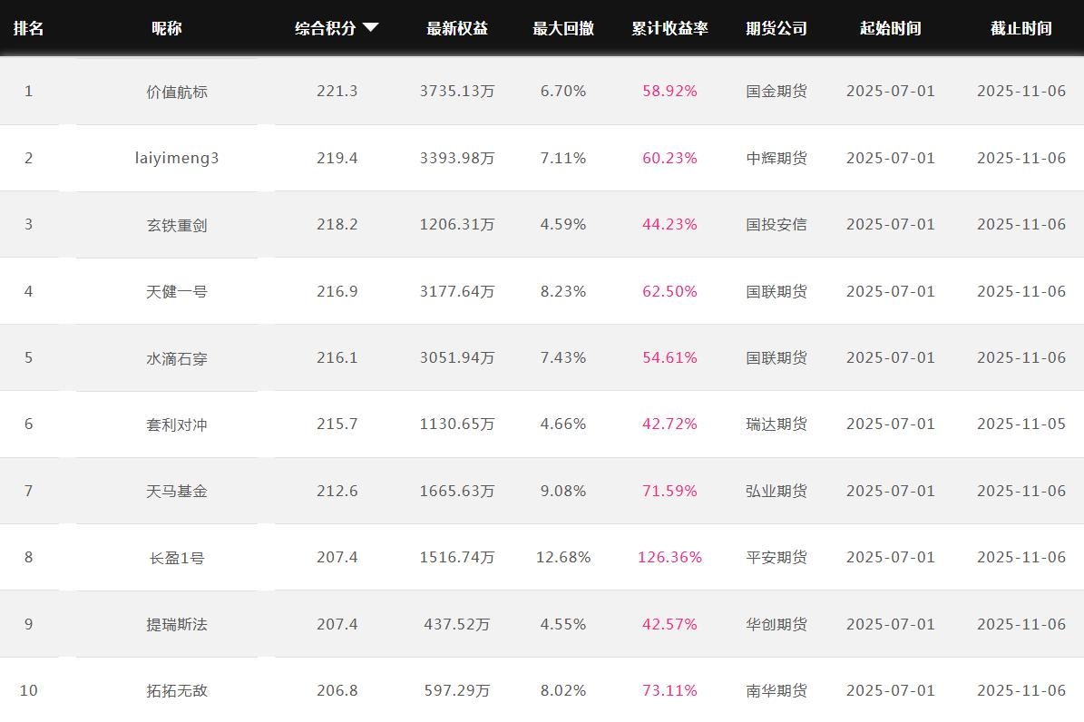 2025年11月【月度排名】(2025年11月1日-11月30日)