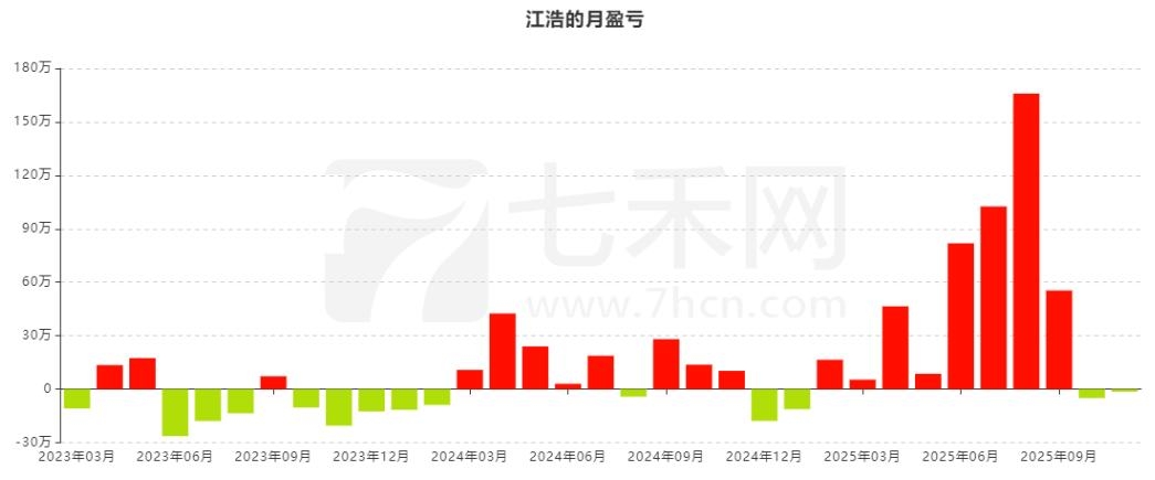 账户“江浩”共计交易33个月,盈利19个月,亏损14个月。