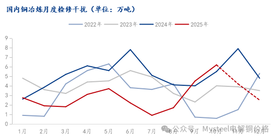 数据来源:Mysteel 另据调研企业的生产计划安排来看,2025年11月国内电解铜预计产量113.2万吨,环比增加2.34%,同比增加17.29%。1-11月国内电解铜预计产量累计为1139.78万吨,同比增加14.72%。 进入11月,冶炼厂检修高峰持续,不过环比10月份有所减少,有部分企业十月检修有所延续到11月,对11月份产量影响也较大,不过部分检修结束企业11月产量逐渐爬产中,同时高铜价不断刺激再生铜的供应,因而11月产量或将有所回升。铜精矿紧张的故事仍在延续,铜精矿TC价格始终处于低位-40美元/干吨附近,随着2026年铜精矿长单加工费谈判仍在拉锯当中,对后续铜精矿供应格局尚不明朗。 总结预测 整体来看,往年四季度是主要的铜冶炼厂的冲量阶段,但今年铜价大幅上涨使得冶炼厂冲量意愿低。加之铜冶炼厂处于检修高峰期,国内供应端矛盾依然突出,使得四季度电解铜产量处于年内偏低情况,后续11月产量或将小幅回升,但产量增长不足。 七禾带你去调研,最新调研活动请扫码咨询