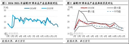 | 【导语】由于承接二三季度新产能压力以及淡季需求拖累,下半年PP生产企业库存压力整体偏高,尤其7-8月及11月企业去库难度较大。 下半年市场新投产装置陆续释放,叠加下游传统需求淡季影响,整体市场供需压力较大,生产企业去库速度放缓。以油制PP生产企业库存为例,5月起生产企业库存阶段压力同比突出;对比近五年历史库存水平,除9月外,下半年生产企业库存持续处于历史偏高位置。