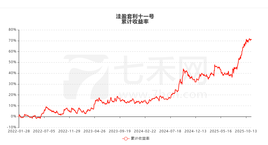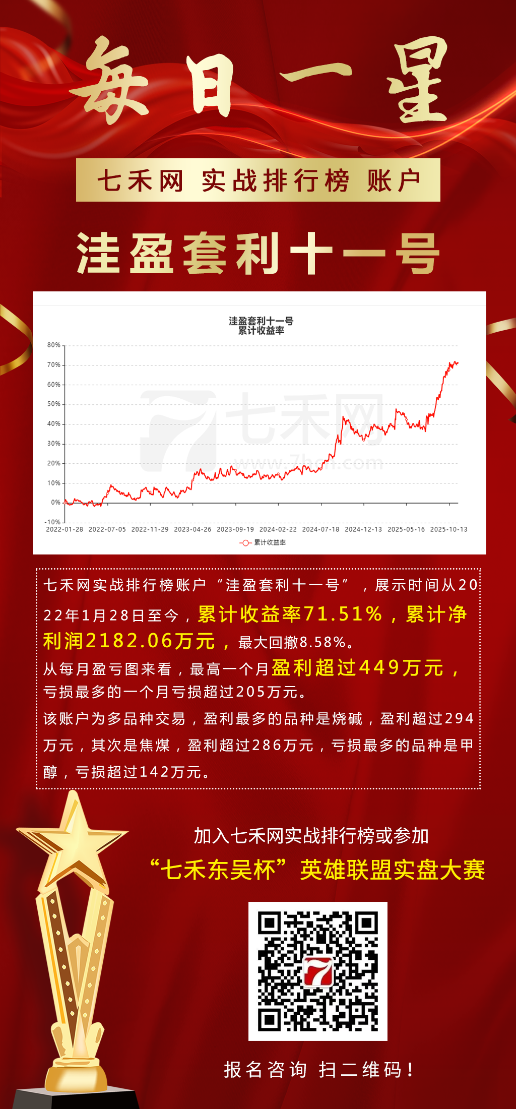 七禾网实战排行榜账户“洼盈套利十一号”,展示时间从2022年1月28日至今,累计收益率71.51%,累计净利润2182.06万元,最大回撤8.58%。
