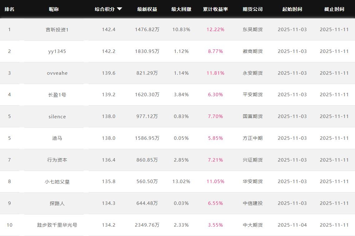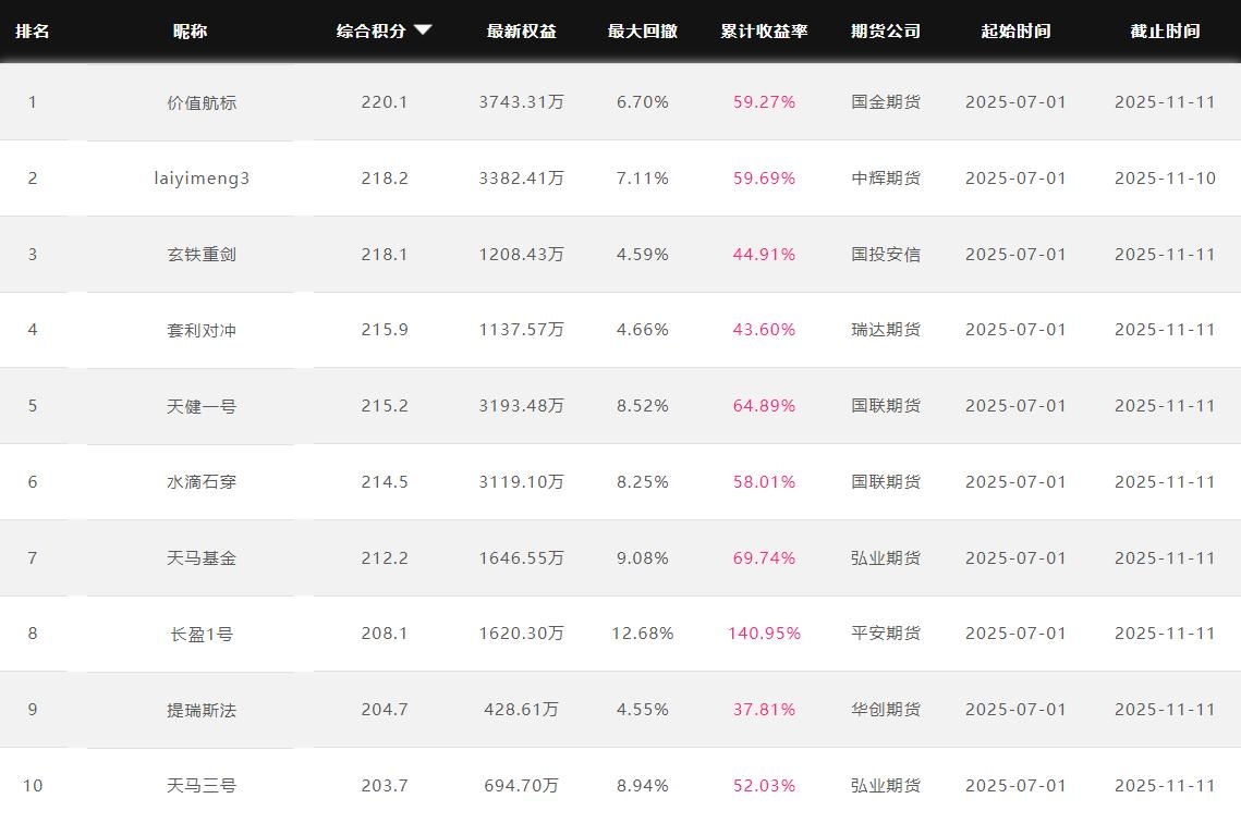 2025年11月【月度排名】(2025年11月1日-11月30日)