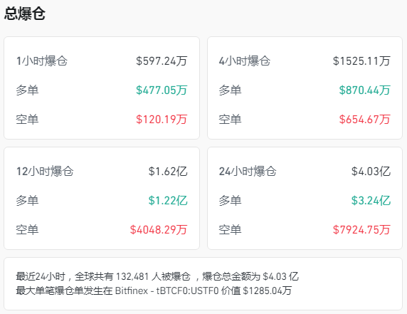 比特币在突破12.6万美元的历史峰值后风光不再,短短数周内跌幅超过20%,市场哀鸿遍野。以太坊的表现同样疲软,在3500美元附近苦苦支撑。更令人揪心的是,在过去24小时内,全球有超过13万投资者遭遇爆仓,损失总额达到4.034亿美元。