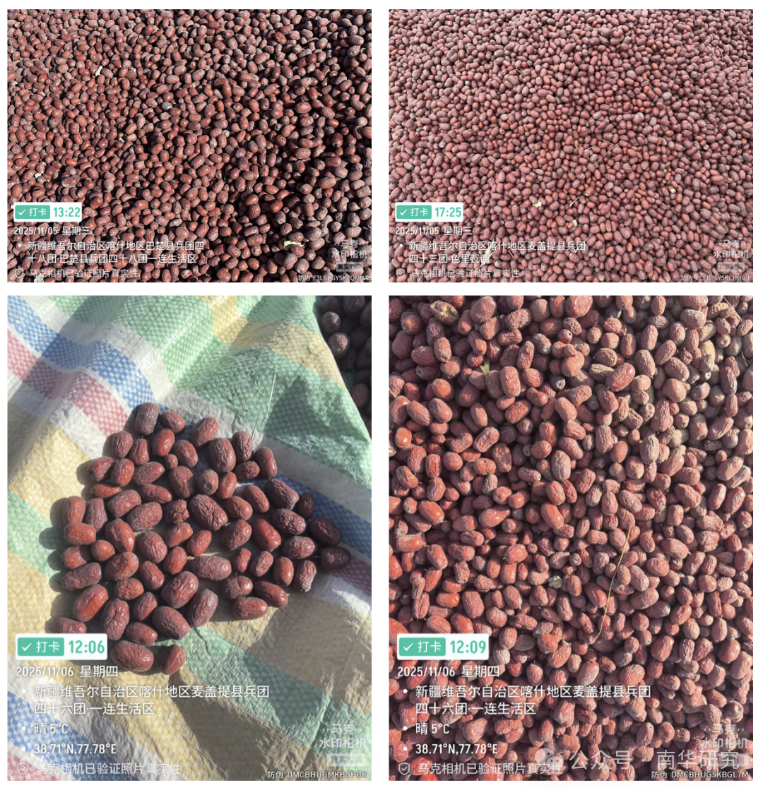综合来看,今年各产区确实存在不同程度的减产,其中包括阿拉尔在内的阿克苏地区大风现象偏多,前期坐果情况均欠佳,主要产量来自后期坐果,生长期偏短,导致整体枣果偏小不压秤,减产相对严重,但相比去年而言,今年红枣品质较好,基本未看见烂枣裂果现象,预计仓单加工费用约在4000-4500元/吨。南疆红枣产区较为分散,各枣园生长情况差异较大,调研数据具有一定的局限性,且目前红枣尚在下树中,受水分及单枣克重等因素影响,农户对产量的估计也容易存在偏差,还需关注后续定产情况。 七禾带你去调研,最新调研活动请扫码咨询