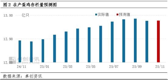 存栏维持高位,供应压力持续释放。11月份新开产的蛋鸡为今年7月份补栏的鸡苗,7月份养殖企业补栏积极性不高,补栏量下降至8000万只左右,环比减幅2%左右,因此11月份新开产蛋鸡数量减少。从老母鸡来看,9-10月份养殖企业集中出栏一批老鸡,11月上旬养殖企业老母鸡出栏意愿降低,老母鸡出栏进度放缓。因此11月上旬在产蛋鸡存栏维持高位,鸡蛋供应压力持续释放。 需求修复缓慢。“双11”期间商超、电商有促销活动,下游采购量增加,小幅带动鸡蛋需求,支撑鸡蛋价格小幅探涨,但从市场表现来看,“双11”对市场的拉动作用有限,需求修复进度缓慢。 11月中下旬需求逐渐改善,但供应压力仍在 需求逐渐恢复。温度降低,鸡蛋存储时间延长,下游贸易商低价补货积极性提升,需求呈现缓慢恢复态势。食品加工企业在蛋价降至阶段性低位后,逢低补货行为增加,也将对价格形成一定支撑 存栏去化难度大,供应压力不减。11月中下旬养殖企业老母鸡出栏进度或偏慢,部分或压栏至春节前出栏,产能去化速度较慢。尽管新开产蛋鸡数量略有减少,但新开产蛋鸡数量或大于老母鸡出栏量,预计在产蛋鸡存栏量或增加至13.60亿只左右,在产蛋鸡存栏量仍然处于近五年高点,来自供应端的压力不减。