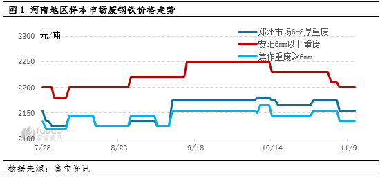 以样本市场为例,目前郑州重废市场价格2130-2180元/吨,较上月环比跌幅1.15%,较去年同期跌幅4.01%;焦作重废市场价格为2110-2160元/吨,较上月环比跌幅1.39%,较去年同期跌幅8.76%。多方因素作用下,市场悲观情绪弥漫,价格重心下移,跌势难止。 供应端:资源缩量,场地承压,外流现象加剧 从供应端来看,受国内宏观经济环境影响,制造业、建筑业活动指数持续位于荣枯线以下,导致工业产废和拆迁废钢的源头性产出同比出现显著下滑。据富宝资讯调研统计,10月河南地区社会废钢回收总量较去年同期减少约5%-8%。资源回收的“源头活水”不足,成为制约市场供应的重要因素。 再就是废钢铁场地“蓄水池”效应减弱。通过近期对河南市场走访调研,场地老板们说得最多的一句话就是:“现在谁敢囤货啊?输不起了!” 资源“贫血”是事实,但更关键是心态“缺血”。通过与市场商家现场沟通了解到,商家近年来入市操作心态发生了根本性转变。以前看到价格持续下跌,多有补库计划,坐等行情反弹。目前多数废钢铁加工场地库存周转压到了极限,普遍只有3-5天的量。据了解,当前废钢铁场地加工完的毛利润,除去人工、电费、设备损耗,一吨利润在30-50元;部分优质料型利润会相对可观一些。导致此现象的原因主要受限于当前微利甚至负利的状态下,“活下去”比“赚大钱”更重要。 “水往低处流,货往高价走”。在利润相对有限的情况下,贸易商更注重市场区域的价差。以汽车拆解相关料型为例,河南市场均价较河北市场低80-100元/吨,较山西市场低60-90元/吨。明显的价差为资源跨区域流动提供了动力,部分豫北、豫中西地区的优质废钢资源通过物流渠道,持续流向出价更高的山西和河北钢厂,进一步加剧了本地市场的供应紧张局面。 需求端:钢厂利润主导,按需采购成主流 需求侧的表现同样不容乐观,钢厂的生产策略完全由利润和成材销售情况所主导。 全国49家独立电炉产能利用率维持在35% 以下,处于年内低位,对废钢的整体需求形成拖累。目前河南地区部分电炉厂同样处于亏损状态,整体电炉开工率处于低位。目前螺纹钢等成品材价格低迷,而原料、电价、石墨电极等成本高企,短流程炼钢利润持续为负值。根据模型测算,11月华中地区独立电炉钢厂平电吨钢亏损在150-200元。因此,河南地区的部分电炉厂选择了减产或提前进行年度检修。 相较于电炉,长流程钢厂由于铁废差和对生产稳定性的要求,对废钢需求韧性相对较强。然而,在下游钢材销售不畅、厂内钢材库存累积的压力下,钢厂普遍缺乏冬储或大规模补库的动力。多数钢厂其采购策略严格遵循“按需采购”原则,仅为保证正常生产而维持日常到货量。11月,河南主要长流程钢厂的废钢日耗量维持在2000-3500吨,与10月相比未有明显增长,废钢库存可用天数维持在7-10天的低位水平。 在整体需求疲软的背景下,料型间的结构性差异凸显。为了保障炼钢成本和铁水质量,钢厂更倾向于采购剪切料、重中废等优质废钢。这反映出钢厂在微利时代对成本控制和原料质量的精细化管理。 综合来看,11月的河南废钢市场是弱现实与弱预期交织的典型,供需博弈的天平明显向买方倾斜。在产业链整体利润微薄的情况下,市场参与者普遍采取防御性策略,悲观情绪已成为市场主导。短期内,市场仍将处于寻找底部的过程之中。 七禾带你去调研,最新调研活动请扫码咨询