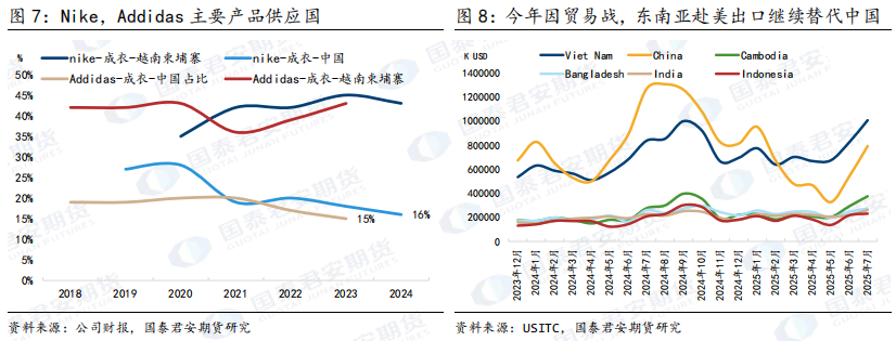 中期来看,新装置仍不少,2026年供需承压。年内和2026年长丝、短纤仍有不少的新装置规划落地,2026年国内短纤主要是2套装置投产预期:恒逸逸达25万吨装置和新凤鸣55万吨装置,分别规划在上半年和年中投产,名义产能增速8.7%,相对较高。另外由于逸达25万吨装置主产缝纫线(缝纫线目前年产量约75万吨),也可能连带影响水刺,对高端产品的非标价差的影响可能较大。需求端,江浙的终端仍将持续面临西南、新疆的低成本装置的压力,终端“走出去”也会带来利好聚酯直接出口和挤压纺服出口的一体两面作用。赴美出口的主力从中国转向东南亚的过程基本已经完成,终端的出口在寻找更好的目的地过程中也会持续面对竞争。