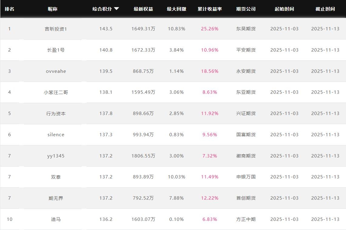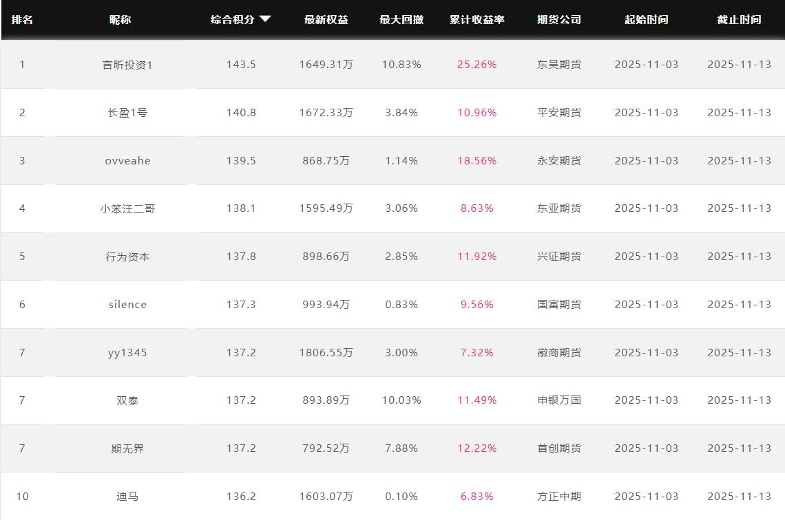 2025年11月【月度排名】(2025年11月1日-11月30日)