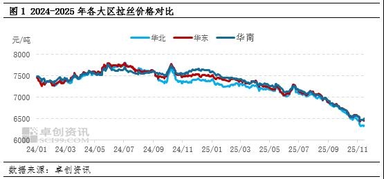 | 【导语】:2025年以来,国内PP拉丝市场价格整体呈现震荡下行趋势,华南、华东与华北的价差在1-10月份逐渐收窄,近期却有所扩大。后市来看,华南区域装置检修更为集中,供应压力将有所缓解,预计华南与其他大区之间的拉丝价差将继续走阔。 2025年以来各大区价格走势一致,均呈现震荡下行的趋势。年内原油价格整体呈下行趋势,虽然油价阶段性存在反弹,但对PP的成本端支撑力度仍偏弱。从供需基本面情况来看,今年新装置不断投产,且国内生产商的盈利状况有所改善,开工率维持在较高水平,供应端压力逐渐增加。同时,由于下游工厂新增订单不足,盈利情况不佳,对原材料的采购意愿有限,导致需求端未能明显释放,从而对PP价格形成抑制作用,使得国内拉丝市场价格持续走低。
