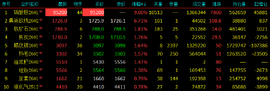 | 2025年11月17日,国内期货主力合约涨跌互现。碳酸锂封涨停板,涨幅为9%,集运指数(欧线)涨超6%,硅铁、铁矿石、焦炭、螺纹钢、热卷涨超1%。跌幅方面,沪银跌超4%,沪金跌超3%,多晶硅跌近3%。
