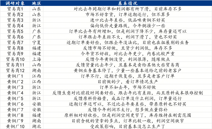 数据来源:Mysteel 贸易商:尽管存在少数规模较大的贸易商订单量尚能维持一定水平,但多数贸易商的订单量相较于去年同期出现下降。同时,除开部分进口贸易商利润表现尚可外,大部分的贸易商订单利润也呈下滑状态。 黄铜厂:当前下游少数铜厂接到的订单量较去年有所增长,但大部分铜厂的订单量却呈现下滑态势,加上终端市场对高价产品颇为抗拒,而市场废黄铜原料价格偏高,导致下游整体的利润空间受到显著压缩。 三、供应方面 从调研情况来看,目前多数地区市场上的废黄铜原料供应较为紧张,且与去年同期相比,紧张态势进一步加剧。一方面,不少贸易商表示,因工业废料来源的减少,市场各个货源渠道的供应量都有下滑迹象;另一方面,由于价格过高,贸易商面临的风险增大,因此在进货时更加谨慎。受上述两方因素共同作用,市场现货流通的阻力不言而喻。 四、需求方面 从调研结果不难看出,在下游黄铜厂面临整体订单利润萎缩、多数订单数量下滑的背景下,厂家在采购环节只能采取谨慎策略,以此控制生产的成本,这也使得市场上难有大规模采购出现。此外,部分地区仍受政策因素影响,工厂运行受阻,这进一步拉低了下游对原料的需求力度。 五、总结与预测 综合来看,近期废黄铜市场的供需状况虽有一定程度的改善,但与去年同期相比,整体上仍存在不小的差距,尤其是在订单利润方面,上下游客户均反馈出现了程度的缩减。对后市而言,鉴于当前市场需求复苏较为迟缓,且铜价维持在高位运行,废黄铜市场后续发展态势预计仍难言乐观。 七禾带你去调研,最新调研活动请扫码咨询