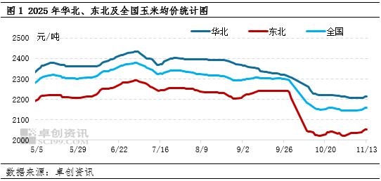| 【导语】进入11月东北产区玉米价格缓慢上涨,且涨幅大于华北和全国平均水平,根本原因是基层惜售情绪较为一致,市场供应增量放缓。受需求支撑,预计价格涨势或延续至12月中上旬。12月中下旬吉林、黑龙江或集中上量,价格或小幅回调,但上涨趋势暂难改变。 11月上半月东北玉米价格以上涨趋势为主 进入11月份东北产区玉米价格缓慢上涨,且涨幅明显大于华北及全国平均水平。卓创资讯监测数据显示,截至11月15日,东北产区日均价由2031元/吨涨至2051元/吨,上涨20元/吨,涨幅0.98%,大于华北产区涨幅(0.31%)和全国均价涨幅(0.60%)。根本原因是产区基层农户普遍惜售,市场供应增量放缓。