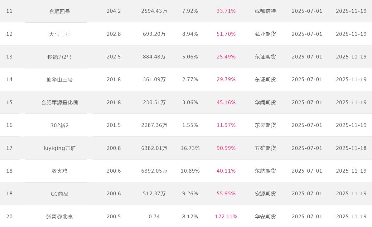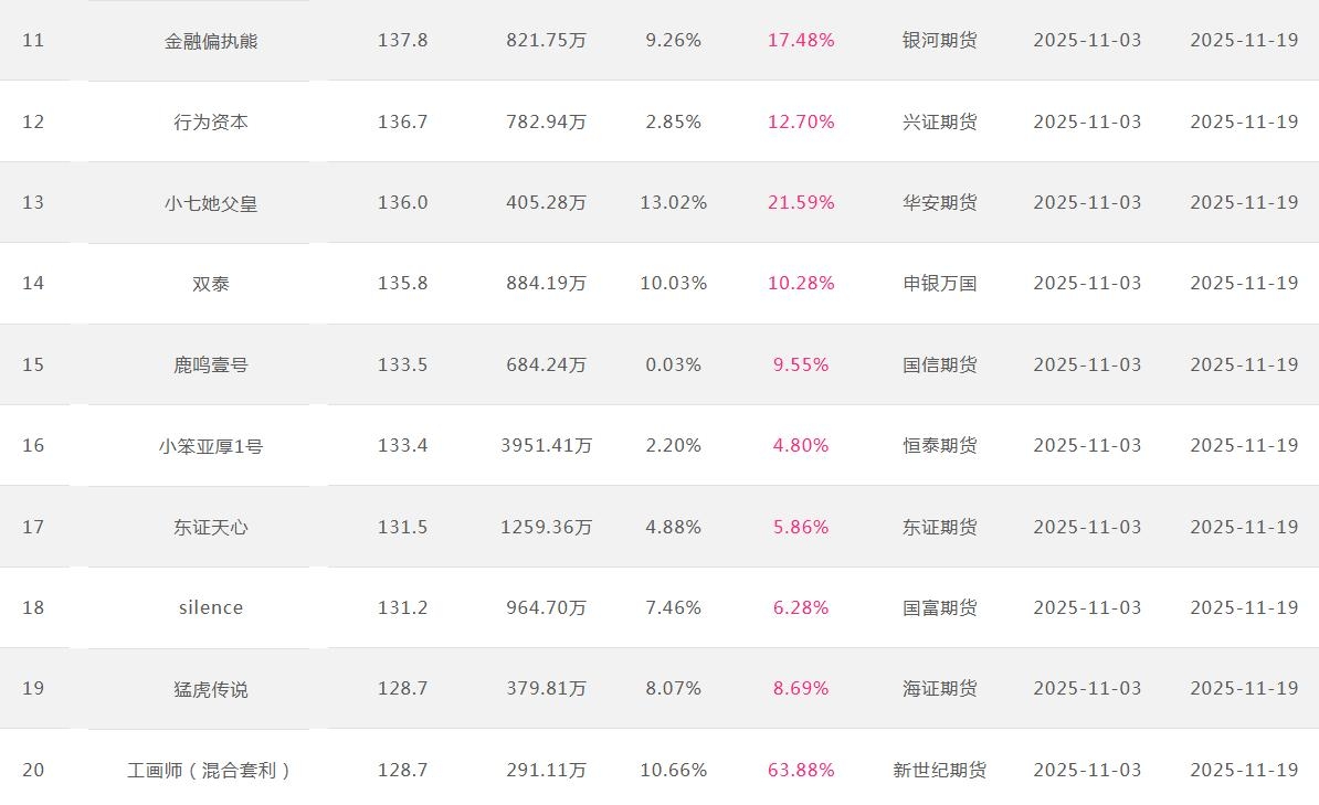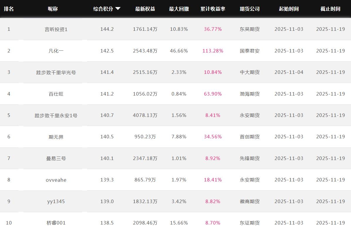 2025年11月【月度排名】(2025年11月1日-11月30日)