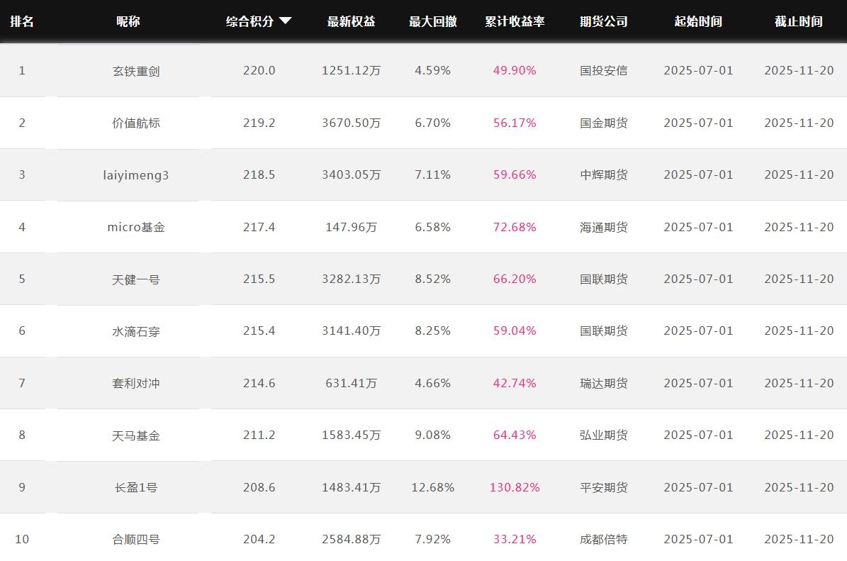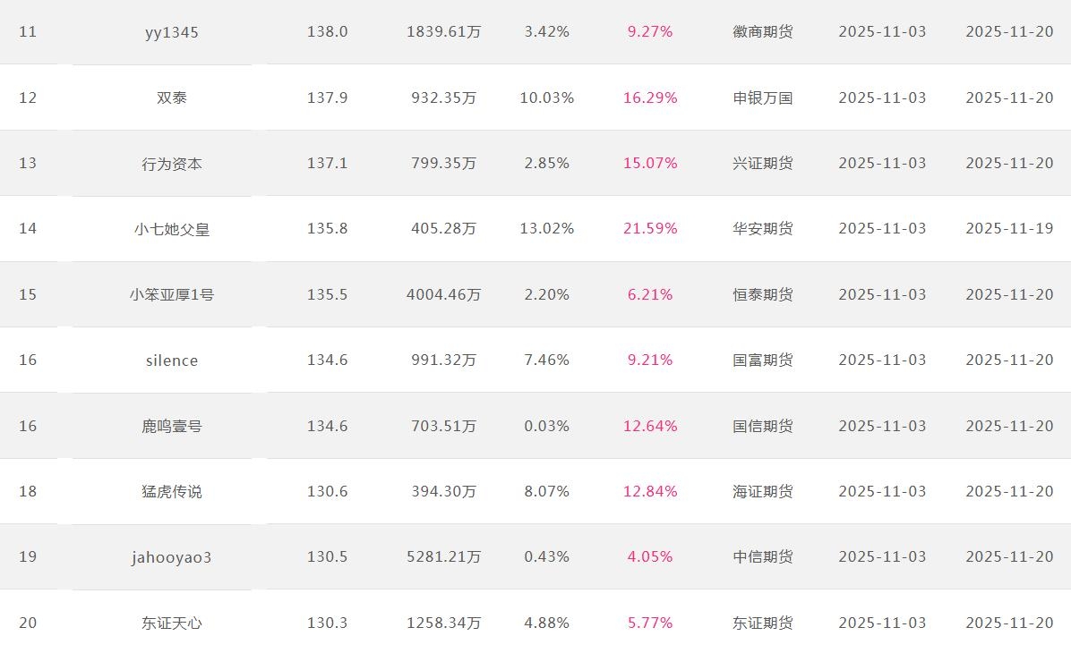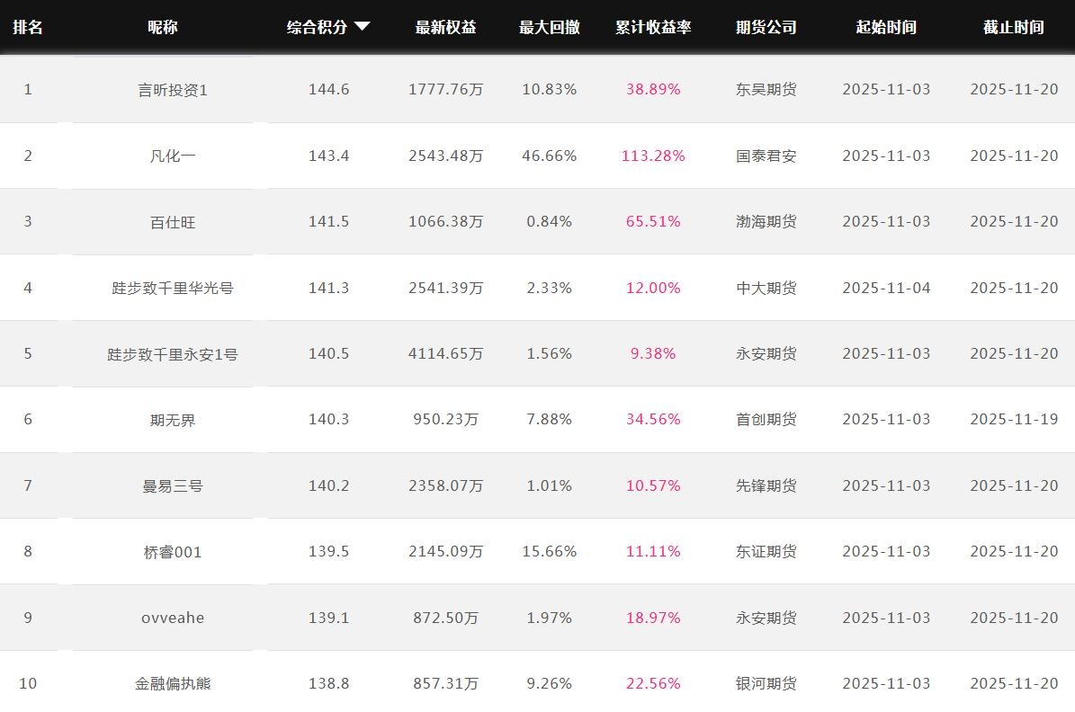 2025年11月【月度排名】(2025年11月1日-11月30日)