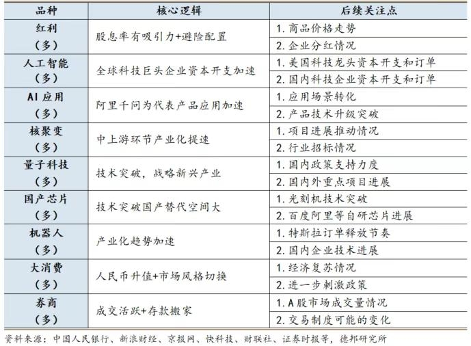 2) 近期核心思路总结 权益方面,我们认为近期市场延续偏弱多因美联储降息预期、中日关系等外部因素影响,市场短期或仍面临一定压力,但中长期上行趋势不改,建议均衡配置红利、微盘、产业趋势板,关注政策驱动及国际大宗品价格。 债市方面,我们认为短期资金面预计将维持宽松,后续需关注国内政策、央行买卖国债效果、美联储12月进一步降息预期等因素。 商品方面,我们认为国内反内卷相关板块如碳酸锂、双硅供给端政策或逐步落地,预期强化下或仍有上行空间;美联储当前表态下贵金属预期或有所转弱,建议关注后续美国通胀数据,若12月非农数据疲软或地缘风险升温,贵金属仍有上行机会。 风险提示: 国际地缘政治变化,国际大宗品价格波动。 责任编辑:七禾编辑 |