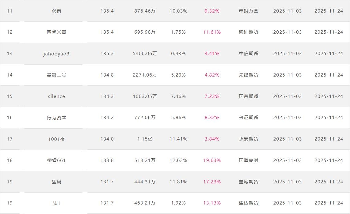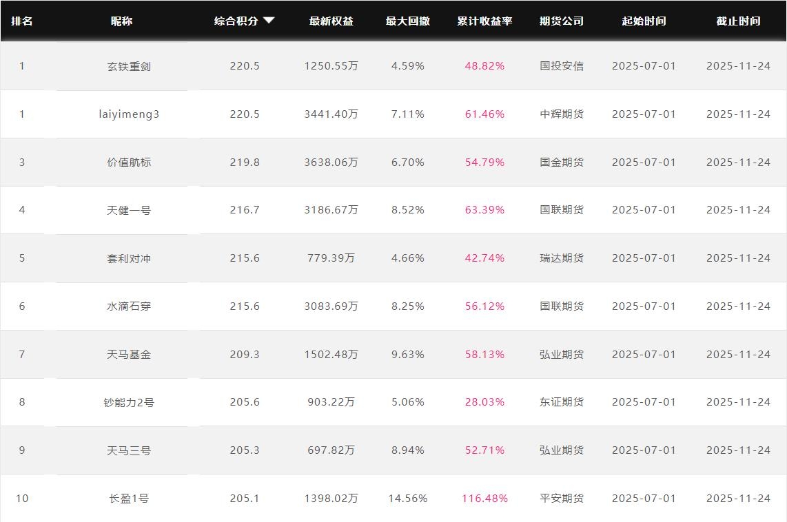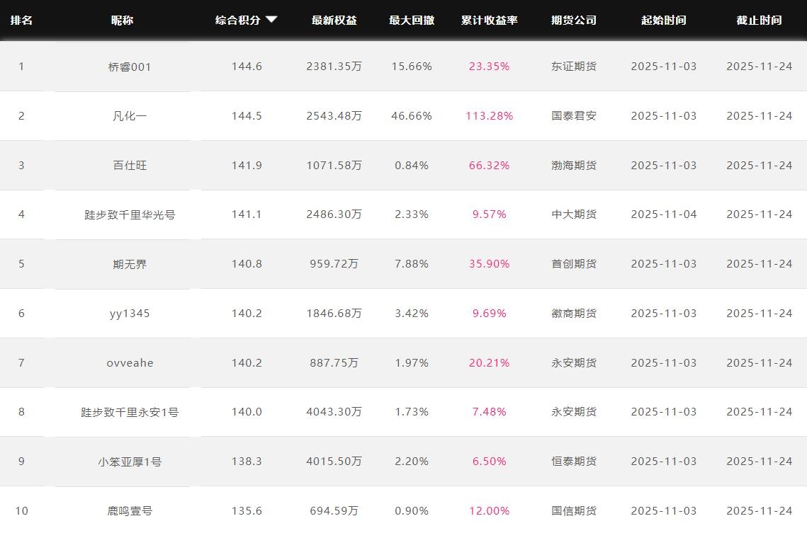 2025年11月【月度排名】(2025年11月1日-11月30日)
