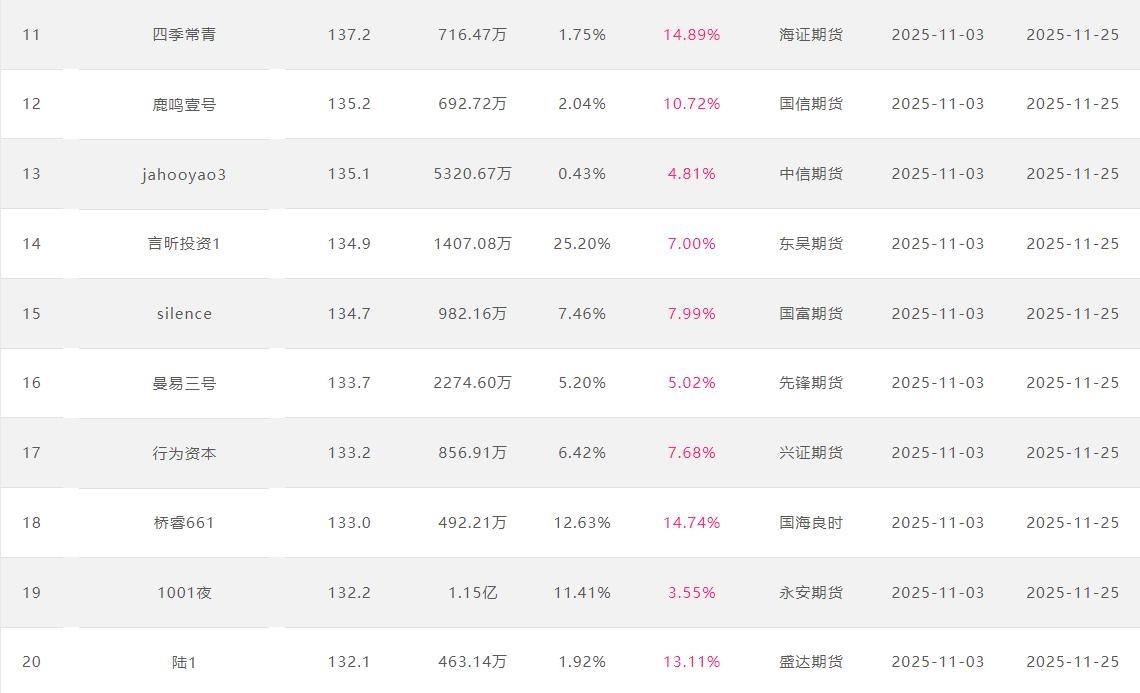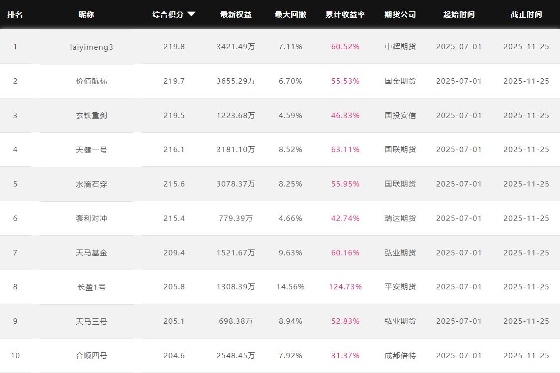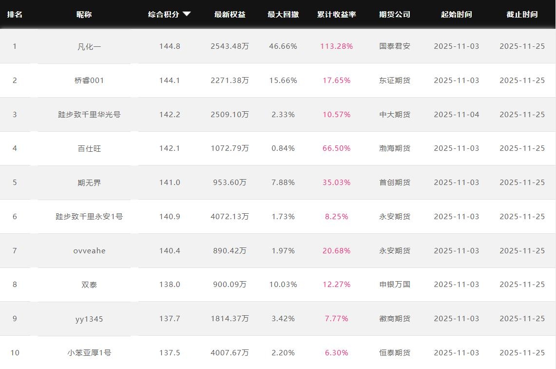 2025年11月【月度排名】(2025年11月1日-11月30日)