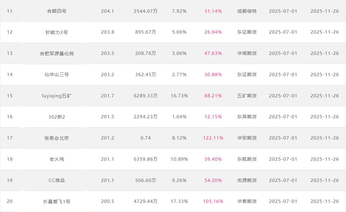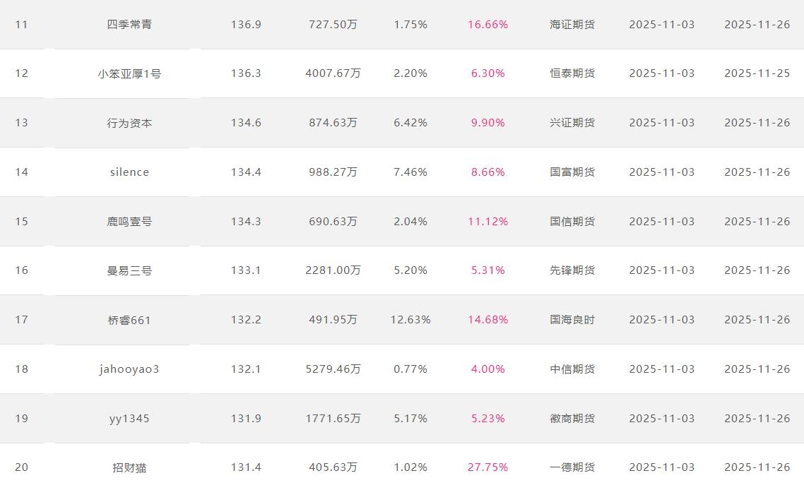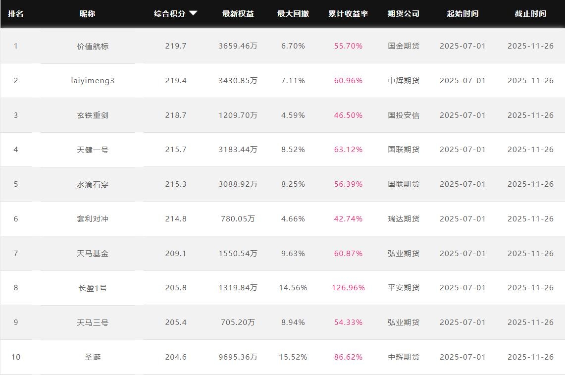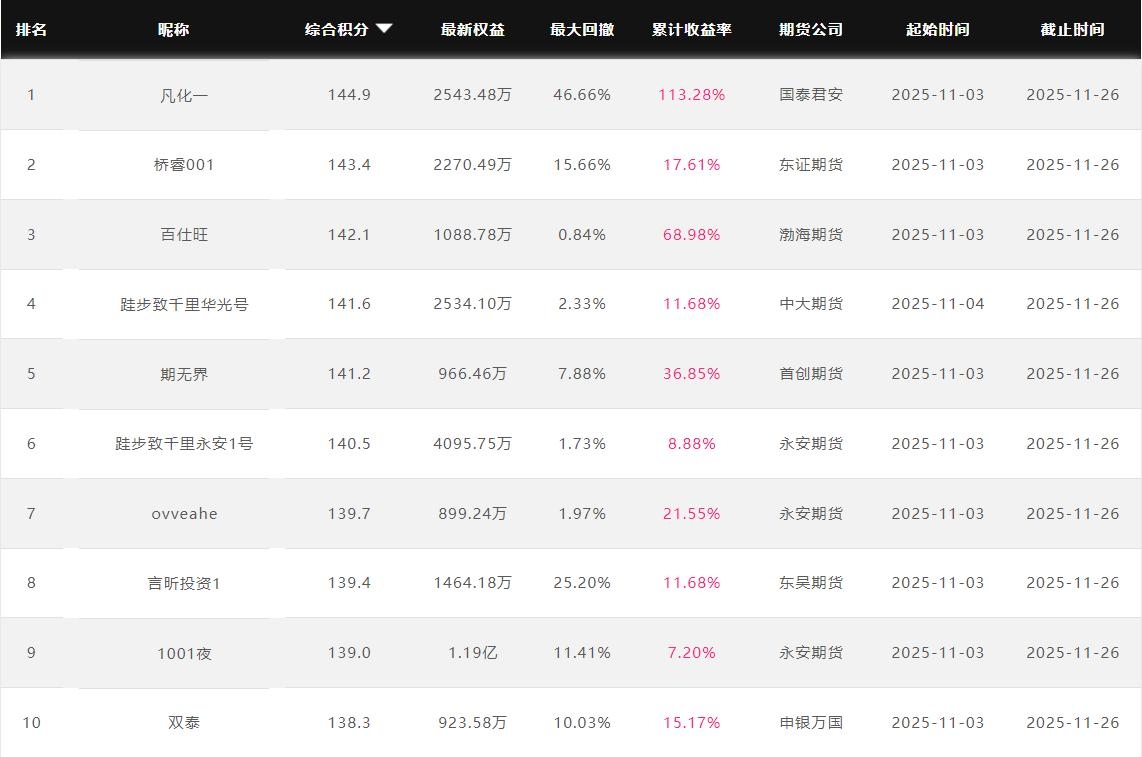2025年11月【月度排名】(2025年11月1日-11月30日)