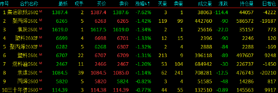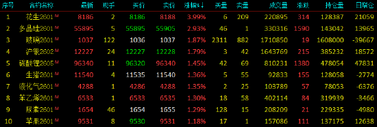 | 2025年11月26日,国内期货主力合约涨跌不一,花生涨近4%,多晶硅涨近3%,玻璃、沪银涨近2%,碳酸锂、尿素、生猪涨超1%。跌幅方面,集运欧线跌近8%,聚丙烯(PP)、焦炭、焦煤、塑料、燃油跌超1%。