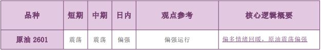 备注: 1.有夜盘的品种以夜盘收盘价为起始价格,无夜盘的品种以昨日收盘价为起始价格,当日日盘收盘价为终点价格,计算涨跌幅度。 2.跌幅大于 1%为弱势,跌幅 0~1%为偏弱,涨幅 0~1%为偏强,涨幅大于1%为强势。 3.偏强/偏弱只针对日内观点,短期和中期不做区分。 主要品种价格行情驱动逻辑—商品期货能源化工板块 原油(SC) 日内观点:偏强 中期观点:震荡 参考观点:偏强运行 核心逻辑:由于上周末美国公布的 9 月非农就业数据显著差于预期,导致宏观情绪转弱。近期OPEC最新季度报告把三季度全球油市从“供不应求”直接翻转为“日过剩 50 万桶”,供应宽松预期放大。目前油市偏弱的供需结构博弈地缘情绪逐渐凸显。由于市场担忧俄乌冲突可能达成停战协议,油市地缘溢价回吐。本周三夜盘,国内原油期货维持震荡偏强的走势,期价略微收涨。预计本周四国内原油期货或维持偏强的走势。 责任编辑:七禾小编 |