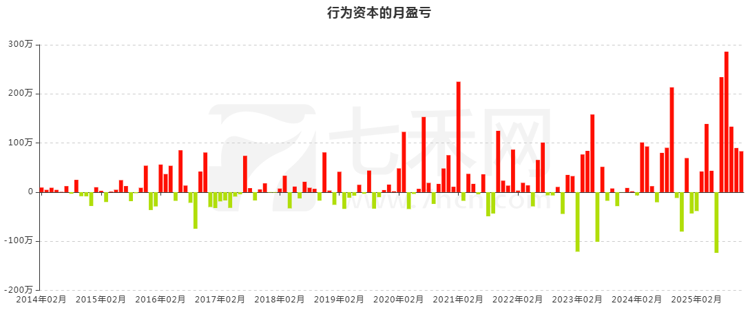 从月盈亏来看,账户累计交易142个月,其中盈利88个月,亏损54个月,最高一个月盈利近286万,亏损最多的一个月亏123万。