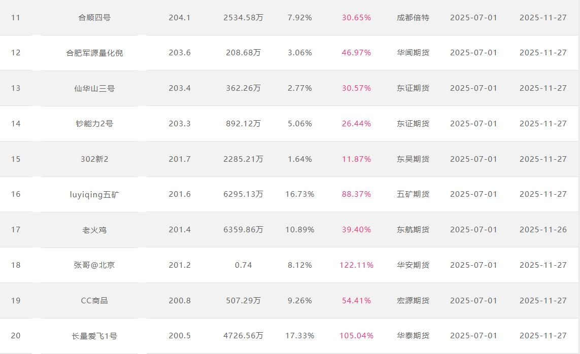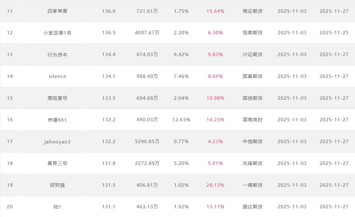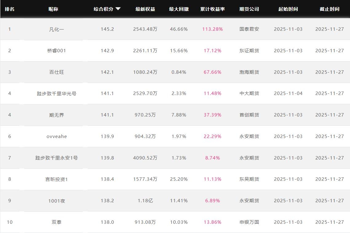 2025年11月【月度排名】(2025年11月1日-11月30日)