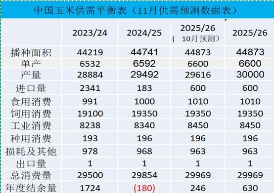 | 观点小结 从市场调研信息来看,2025/26年度东北新季玉米产量以及质量都同比高于去年,但东北玉米产量增幅市场存在较大的争议。华北及华中玉米虽然产量并没有出现较大损失,但毒素含量较高,有较大比例不能进入饲料端。 10月因市场对丰产以及饲料需求环比下滑的担忧,对中长期的玉米价格并不看好,加上华北华中玉米抛售较为积极,市场情绪较为悲观,贸易商以及下游企业收购意愿一般,市场渠道以及中下游企业均维持低库存,等现货价格进一步回落至成本线附近再收购。进入11月,华北华中贸易商因当地粮源较差,积极去东北当地收购,逐步稳定市场现货价格,在市场情绪逐步好转的情况下,基层惜售情绪也随着增强,供应出现阶段性偏紧,现货价格持续上涨,进一步推升看涨情绪,加上物流紧张,因此上周期现价格出现大幅上涨。 这波上涨的基础是中下游一致性看空,导致新粮刚上市采购意愿较差,加上结转库存以及渠道,中下游企业库存都较低,因此市场一旦进入主动备货阶段,在情绪推动下,市场容易产生阶段性的供需错配。但今年东北玉米毕竟丰产,加上销售进度较慢,在中下游备货到一定库存后,备货情绪下降,加上天气以及春节前资金兑现等因素基层被动出售意愿增强,市场阶段性供应偏紧或将缓解,现货价格上涨趋势也将放缓。从中长期来看,进口玉米利润相对较高,美国以及巴西玉米丰产,供应充裕,若国内现货价格过高,进口玉米进口量或将扩大,因此玉米行情并不具备牛市基础,但基于今年结转库存较低,饲料需求虽同比减少,但幅度有限,因此现货价格重心或将高于去年。 整体来看,玉米这波上涨并不是无源之水,是对前期市场一致性看空,被低估的修复,但因供需不存在大矛盾以及全球玉米供应充裕,因此也不具备牛市特征,未建库存的可在春节前玉米看涨情绪回落后,择机建仓。 1、产量环比增加 11月上中旬对东北部分地区进行了玉米调研,调研信息显示今年东北玉米无论从质量还是产量均处于历史较高水平,但同比增幅说法不一,从15%-50%都有,这可能与当地去年减产幅度有关,但今年是个丰产年是市场的共识,个人预估今年东北玉米整体增产在10%-15%之间相对合理。此外华北华中玉米因雨水晾晒不及时,毒素含量相对偏高,预估至少30%不能进饲料企业,大约数量在2000万吨-3000万吨之间。从农业部发布的近期产量预估来看,11月预测的2025/26年度玉米产量为3亿吨,较10月预测值增加1.3%,较上一年度增加1.7%。 在种植成本方面,因近三年东北地区地租整体呈下降趋势,因此近三年种植成本也呈现下降趋势。以黑龙江为例,今年30个水玉米的种植成本在0.75元/斤左右,折合成14个水二等玉米到北港的成本在2050元/吨左右。从近几年的价格规律来看,在稳产保价政策的调控下,种植成本大致是基层销售的底价区域。 图1:国内玉米平衡表