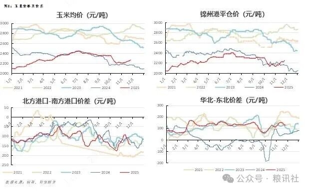 | 报告品种:玉米 原文链接:https://mp.weixin.qq.com/s/I43tYLY__BtwoMtpUddWRw?scene=1&click_id=4 11月25日,大连玉米主力C2601合约以2254元/吨收盘、盘中冲高至2257元/吨,较前日结算价大涨36点——粮讯社监测数据显示,这一涨幅不仅创下7月下旬以来新高,更带动单日成交量突破79万手、持仓量增至103万手,资金净流入超1.6亿元。期现市场的“共振狂欢”背后,粮讯社通过一线调研、数据拆解,发现这场涨势是短期情绪与中长期压力的激烈碰撞:表面是供需紧平衡,实则是成本顶与累库预期的“冰与火”。 一、估值预警:2254已触“成本顶”,期现贴水被抹平 粮讯社跟踪数据显示,当前玉米的估值逻辑已从“低估修复”转向“高位承压”: 现货成本锚点:粮讯社调研东北种植户发现,2025年玉米种植成本约2100元/吨(折合1.05元/斤),当前东北优质粮源收购价叠加运费后北方港口对应成本价在2150-2250元/吨区间,期货2254元/吨的收盘价已触及成本上沿,农户种植从“亏损”转向“微利”。 期现基差收窄:粮讯社基差监测显示,C2601合约前期对现货的贴水已基本抹平,基差收窄至50元/吨以内,期货从“补涨”转向“跟涨”,领涨动力大幅透支。 替代价差约束:粮讯社替代品数据库显示,玉米-小麦价差维持在250-270元/吨,小麦替代性减弱;但玉米-高粱价差为负,高粱性价比更高,若替代品价格回落,将直接压制玉米价格空间。 二、驱动拆解:短期“紧平衡”是表象,中长期“累库”是本质 粮讯社通过产区、销区、企业三线调研发现,当前涨势是短期供需错配+资金情绪共同催化的结果,但中长期基本面并不支撑持续走强: (一)短期:粮讯社一线调研——“惜售+补库”制造紧平衡 供应端:粮讯社东北产区调研显示,新粮上市进度过半,但农户因前期低价惜售,基层粮源流通放缓;华北受阴雨影响,约2000-3000万吨粮源霉变,优质粮源缺口扩大,粮讯社监测山东深加工企业转向东北抢粮,东北铁路进关量同比增160%,部分站点出现装运排队。 需求端:粮讯社企业跟踪数据显示,中储粮托底收储提供价格锚点;饲料企业启动春节前备货,生猪存栏4.3亿头支撑年需求1.9亿吨;深加工企业开工率回升,山东到车量连续增加。 (二)中长期:供需模型——“抛售+增产”将打破平衡 供应释放:粮讯社气象监测显示,东北上冻后农户售粮意愿可能增强,明年2-3月新粮集中上市,叠加当前粮权未大量转移,粮讯社预测年前或出现一定的季节性抛售,北港到港量回升将压制价格。 产量预期:种植面积数据库显示,2025/26年度玉米种植面积与去年持平,但单产向好,市场普遍预期增产,产需缺口收窄至350万吨,全年将进入“累库”状态。 需求疲软:粮讯社养殖跟踪数据显示,能繁母猪存栏小幅下降,白羽肉鸡养殖亏损,饲用需求预期下修;深加工利润处于近五年低位,消费仅增100-200万吨,难以对冲供应增量。