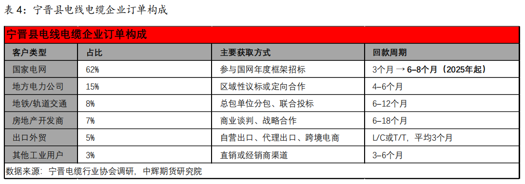 宁晋电线电缆企业的订单来源高度依赖政府类项目采购,尤其是国家电网系统的集中招标。近几年,国内电力基建,尤其新能源光伏和风电,水电,核电等绿色能源大爆发,电线电缆产业迎来重大发展机遇。但随着百年未有之大变局到来,中美全面竞争和关税对抗背景下,产业亟需摆脱无序低效竞争,加速产业升级迭代。根据实地走访,我们得知国网订单门槛显著提升。自2025 年起,国家电网推行“优质优价”采购机制,要求投标企业必须满足以下条件: 1、注册资本≥5 亿元; 2、近三年无重大质量事故; 3、必须具备CNAS 认证实验室; 4、提供履约保函及供应链金融支持证明; 5、接受更长账期安排。 此举导致中小型企业基本被排除在外,预计整体国网订单将从200 亿元缩减至120 亿元左右,且集中流向明达、亚星等少数头部企业。小型企业只能接受大企业的产能溢出外包,并通过灵活用工来维持产线。而大企业的订单账期显著延长,以往 3 个月内回款的常态已被打破,目前普遍拉长至 6–8 个月,部分项目甚至超过一年,这对民营企业现金流造成巨大压力。最后,市场竞争白热化,企业为争夺有限订单,陷入“低价竞标”怪圈,毛利率普遍降至 8%–12%,部分产品接近成本线运营。