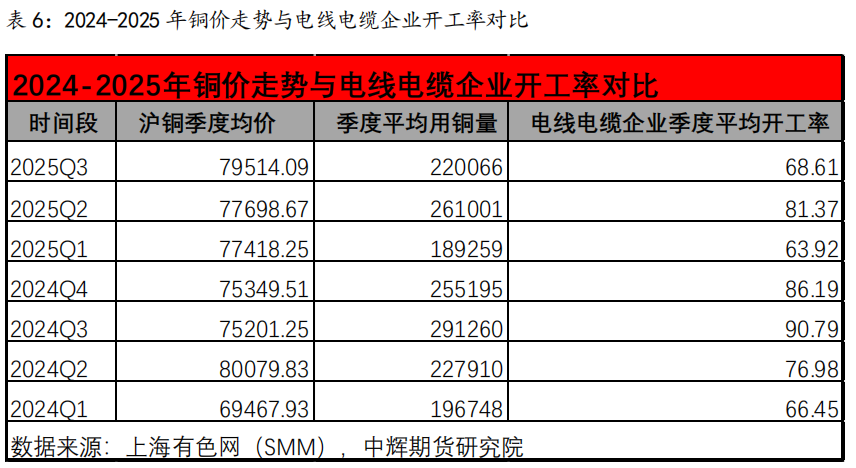 笔者了解某中小型电线电缆企业在2025 年的铜价暴涨中,卖出套保损失惨重。在国庆假期前,铜价突破 8.2 万元/吨时,企业认为价格已经大幅偏离基本面,担心铜价节后再现四月暴跌,忽视了美联储降息和铜矿扰动风险,逐步建仓 100 吨。节后铜价一路走高,拉涨至 8.8 万元/吨时,企业期货盘面亏损严重,追保压力巨大,但现货订单却难以同步提价,下游账期拖延,企业现金流困难,最终企业在期货端含泪提前平仓,随后铜价回落,现货在 8.4 万附近成交。企业期货端亏损 0.6 万元/吨,现货端盈利 0.2 万元/吨,期现对冲后仍亏损 40 万元。而此类事件频发,使得许多企业得出“期货做了不如不做”的结论,进一步抑制了风险管理意识的普及。 铜作为电线电缆企业重要的原材料,价格波动对企业开工率有显著影响。同时,电线电缆企业生产淡旺季明显,往年随着春节临近,企业将逐渐冬储备库,应对开春后的金三银四。但是近期铜价处于历史同期高位,金融力量和宏观叙事下铜价如烈火烹油,一线的产业客户却直面感受经济寒气,笔者本次调研感受金融资本和产业的割裂,实体的艰辛和企业的迷茫,深刻体会到期货从业人员应该肩负的责任和担当,让“金融服务实体的理念”不仅仅流淌在陆家嘴的高楼大厦里和高朋满座的行业峰会上,更应该泼洒在苍茫的华北平原上,机器轰鸣的工厂里。